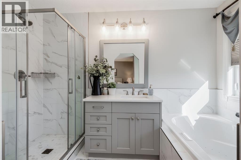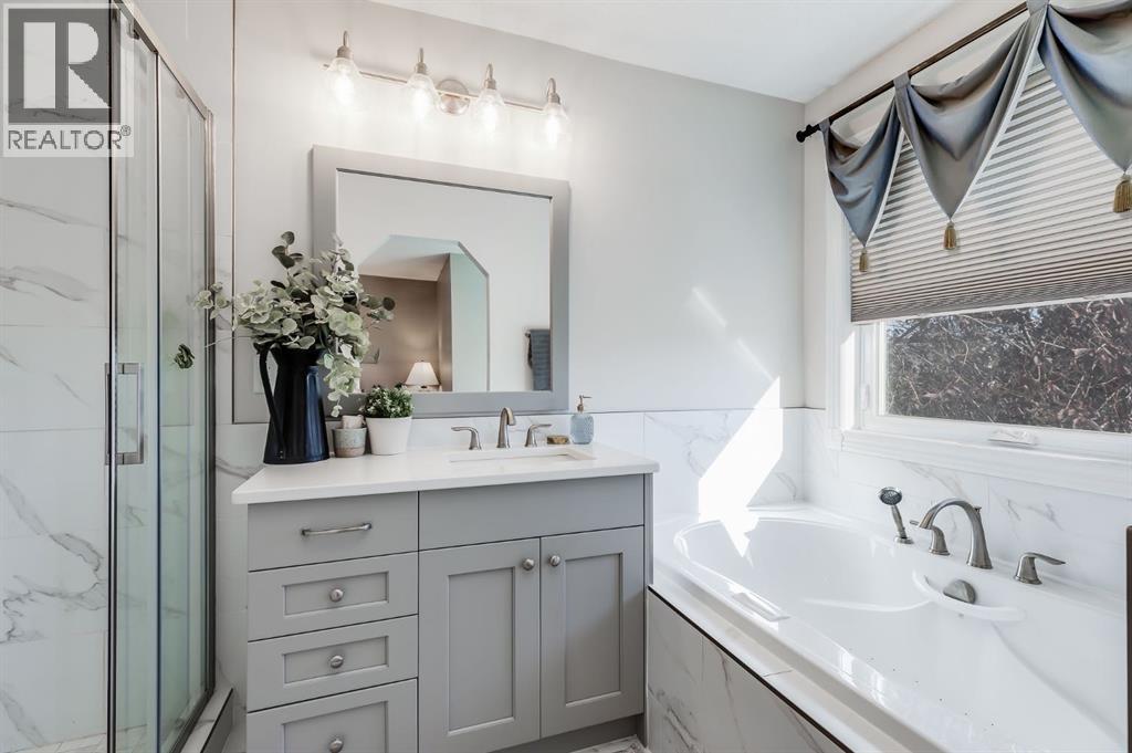 This EXCEPTIONAL Home was Stunningly Updated with incredible care and attention to every detail, and BACKS ONTO WOODSIDE GOLF COURSE which provides beautiful views for you to enjoy year round. When you arrive you are welcomed by the Front Porch with New Exterior Door, and will be impressed with the Cathedral Ceilings with Extra Windows in the Foyer and Spacious Front Living Room making it an inviting space. The Engineerer Hardwood Flooring leads you to a Large Dining Room, and expands to the Family Room that Features a Built in Wall Unit that surrounds the Fireplace, an incredible Picture Window for you to enjoy the views of the Golf Course, and the elegant touch of Upgraded Electric Blinds. The Gorgeous Dream Kitchen features EKKO Kitchen Cabinetry with Crown Mouldings that includes a Lifetime Warranty, an abundance of Pot and Pan Drawers, Corner Pantry, Modern Lighting with Potlights, Stainless Steel Appliances with Induction Stove, Backsplash Tiling, Quartz Countertops, a Great Island with lots of storage and extra seating, and another Large Window for you to enjoy the views while you cook. The Main Level also has a Mudroom with Cabinetry, and a Half Bath. The lovely Staircase with Metal Railing leads to the Upper Level that features a Large Primary Bedroom that can fit a King Suite, a Walk in Closet, Sitting Area to enjoy a book, and the Updated Oasis Ensuite with New Vanity, Glass Shower and Air Jetted Jacuzzi Tub. Two Additional Spacious Bedrooms and a Full Bathroom complete the upper level. The Lower Level has a Huge Recreation Room with a Fireplace and Luxury Vinyl Plank Flooring, the 4th Bedroom with large walk in closet, and 3 pc Bathroom. This amazing Home includes: TRIPLE PANE WINDOWS, Upgraded Lighting throughout, High Efficiency Furnace (2015), Reverse Osmosis System, Water Softener, Underground Sprinklers, Air Conditioning, Singles (2023), and Exterior Doors. The Yard has been lovingly tended and cared for with many perennials and shrubs, a rebuilt 2 Tiered Deck for you to enjoy the yard and views (2018), and an established Apple tree. The Garage has been insulated and drywalled. This Incredible Home is located close to the Golf Course that has excellent Dining, Schools, Transportation, and has easy access to QE2. Come and see this Beauty and Make it Yours. (id:58070)