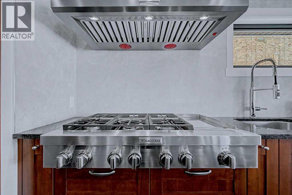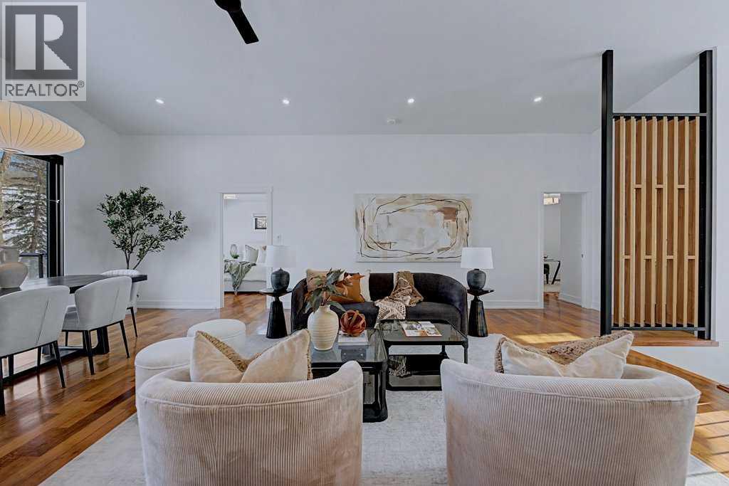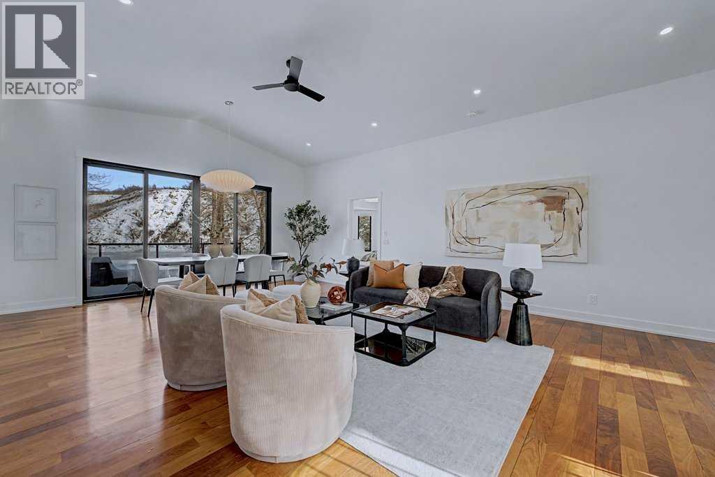 Welcome to this exceptional RIVERFRONT paradise! Set on one of the most expansive lots (over half an acre in size!) on the highly sought-after "Bow Crescent", this extraordinary property provides a unique lifestyle where you can fish, swim, and raft right from your backyard! The beautifully landscaped property has been carefully manicured to remove the brush and many trees that once impeded views of the water. The unique home has been tastefully upgraded over the years...with so many special features. Be swept into the open plan, with its welcoming feature wood wall...immediately introducing modern "style". Floors are adorned with walnut hardwood, adding warmth and elegance to the spaces. All windows, blinds and doors have been replaced. The oversized new patio doors provide views of the river from the main living area, plus access to the expansive "view" deck. The chef's kitchen showcases high-end stainless steel appliances (eg. 48" gas stove with 6 burners and a griddle), granite counters, plus a large island and an adjacent dining area. The master suite features views of the river, plus a BRAND NEW spa-like ensuite, with chic walnut cabinetry/quartz counters, a deep soaker tub and an oversized shower. Bedrooms 2 & 3 share a new 3 piece bathroom with stand-up shower. The bright walk-out basement also features stunning riverfront views, with easy access to the spectacular outdoor grounds that are fully irrigated - 7 zones. Bedrooms 4 & 5 are spacious and share a full 4 piece bathroom, plus an open recreation area with a cozy gas fireplace. New furnace, hot water tank and Central Air Conditioning. Roof is 8 years new. This rare oversized property on Bow Crescent (with over 60 feet of river frontage) offers such an opportunity to experience nature at its best and enjoy this gorgeous upgraded stylish home! (id:58070)