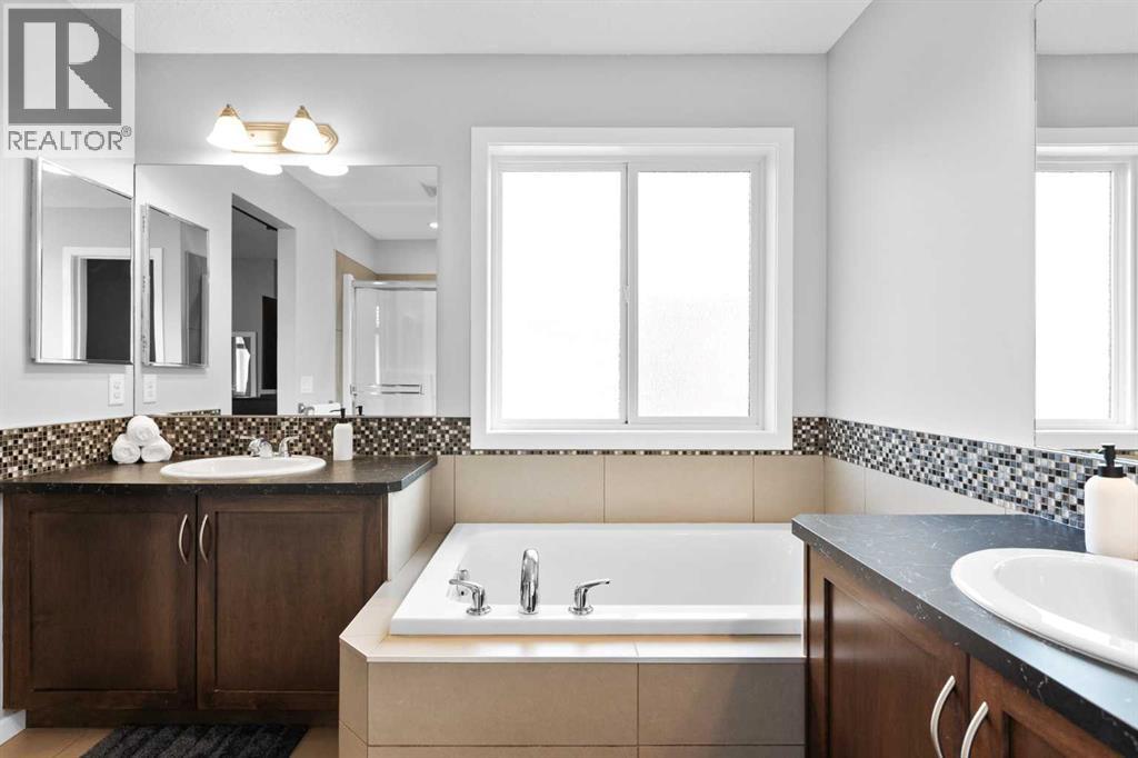 Air Conditioning | Hot Tub | Huge Backyard | Double Attached Garage | Granite Countertops | Stainless Steel Appliances | Pantry | Bonus Room | Gas Fireplace | Large Storage Shed | Welcome to 74 Hillcrest Street SW in the established, family-friendly community of Hillcrest in Airdrie. Offering over 1,800 sq ft above grade and an exceptionally functional layout, this home delivers the space, light, and outdoor living everyone is looking for. The main floor opens with a generous foyer and flows naturally into an open-concept living space designed for everyday practicality. The kitchen is anchored by granite countertops, a large central island, stainless steel appliances, a chimney-style range hood, a corner sink framed by windows, and a walk-in pantry. Ample cabinetry ensures storage is never an issue. The adjacent dining nook is surrounded by windows, creating a bright and welcoming space that connects directly to the full-width deck. The large living room, a main-floor laundry, and a powder room complete this level. Upstairs, the 18 x 13 bonus room stands out with oversized windows that fill the space with natural light, making it ideal for a media room, play area, or second family lounge. The primary bedroom offers a walk-in closet and a private 5-piece ensuite with soaker tub and separate shower. Two additional bedrooms and a full bathroom complete the upper level. The backyard is a major highlight. Larger than many comparable lots, it offers a sizable deck, hot tub, storage shed, and ample fenced yard space for kids, pets, and entertaining. Central air conditioning provides added comfort through the summer months. Hillcrest is consistently sought after for its quiet streets, parks, playgrounds, and walking paths. Schools and everyday amenities are nearby, and quick access to 8 Street SW and Yankee Valley Boulevard connects easily to Highway 2 for a smooth commute into Calgary. You are also well-positioned for westbound travel toward Cochrane, Canmore, and the Rock y Mountains, making weekend escapes part of your lifestyle. A well-designed home in a strong community, offering space, comfort, and long-term value. (id:58070)
