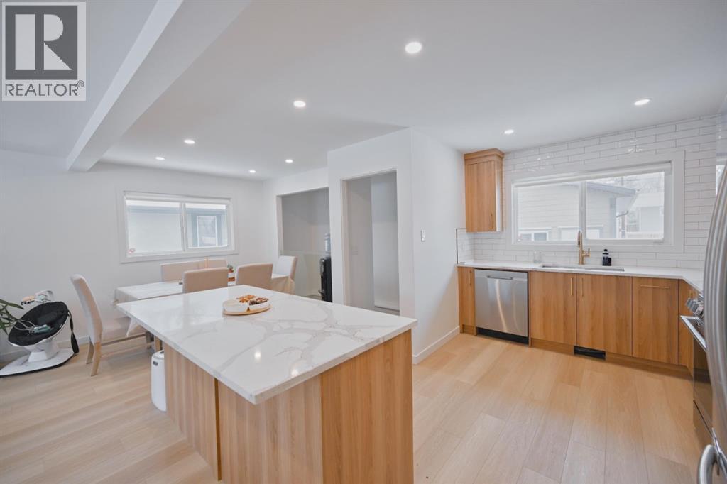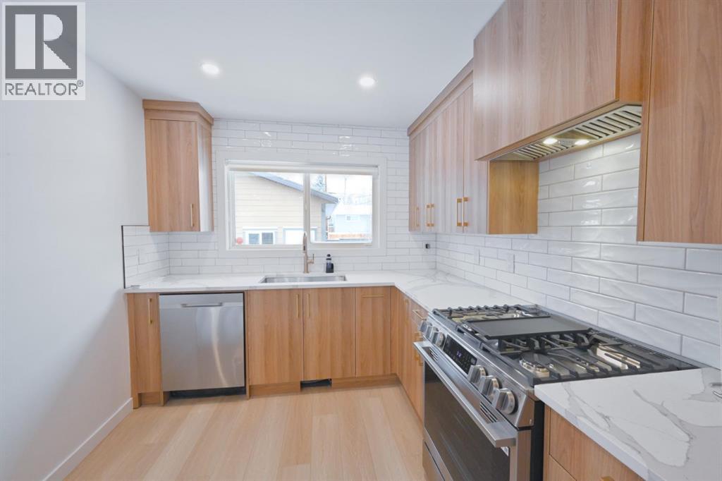 Welcome to 7611 Fleetwood Drive SE, a beautifully and extensively renovated bungalow perfectly situated on a quiet street in the highly sought after community of Fairview, offering outstanding curb appeal with durable Hardie Board siding and elegant stone accents, a newer roof, newer windows, permanent GEMSTONE LED lighting, newer poured concrete walkways and an expansive front driveway, all set on an oversized, fully fenced lot with brand-new landscaping, fresh sod, mature trees and a private stamped concrete patio complete with BBQ hookup, creating the ideal outdoor retreat for relaxing or entertaining; inside, the home showcases brand new vinyl plank flooring throughout, new interior doors, baseboards and fresh modern paint, along with a stunning fully redesigned kitchen featuring sleek quartz countertops, new cabinetry, a new gas range, new built-in microwave and new hood fan, thoughtfully designed to combine style and functionality, while offering three spacious bedrooms and two beautifully renovated bathrooms, both enhanced with luxurious heated floors for year-round comfort, a fully developed basement with a generous recreation area and updated lower bath providing additional versatile living space, and significant mechanical upgrades including new air conditioning, a new hot water tank , and a newer electrical panel for complete peace of mind; completing this exceptional property is a massive heated and insulated double detached garage with both front and rear access, extra height ceilings and off-street parking for up to six vehicles a rare and valuable feature all just steps from schools, transit, parks and shopping, making this truly move in ready Fairview home an absolute standout that shows 10/10 (id:58070)