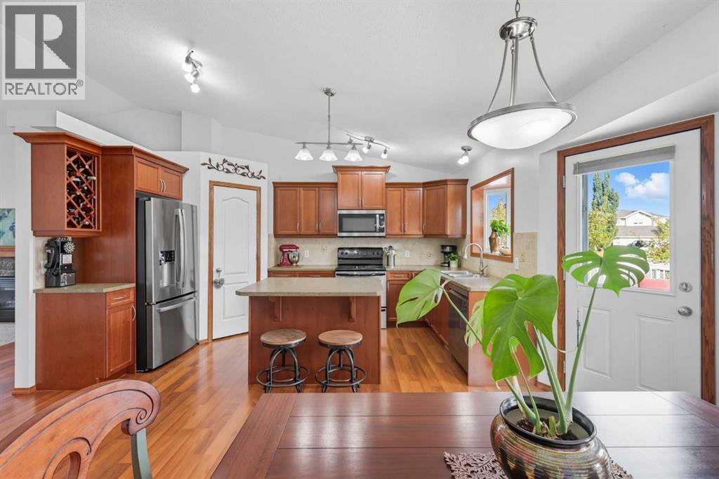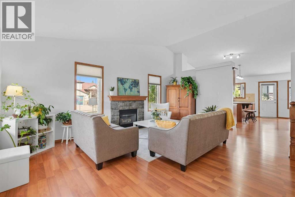 Welcome to 79 Hillcrest Blvd. in beautiful Strathmore, Alberta — a charming bungalow that perfectly blends warmth, comfort, and thoughtful design.Set on a corner lot with incredible curb appeal, this home invites you in with its professional landscaping, underground sprinklers, exterior lighting, and a welcoming front porch. Recently refreshed with a brand-new roof and fresh paint throughout the main floor, every detail has been cared for so you can move right in and start making memories.Step inside and you’re greeted by a bright living room with vaulted ceilings and a cozy fireplace, the perfect place to unwind or gather with family and friends. The kitchen features an island, new fridge and dishwasher, a large window overlooking the backyard, a spacious pantry, and a custom wine shelf — a beautiful blend of function and charm. Just off the kitchen, the dining area is made for connection, whether it’s weeknight dinners or weekend entertaining.The main floor includes a generous primary suite complete with a walk-in closet and ensuite — a true retreat at the end of the day, along with a bedroom, full bathroom, and main floor laundry.Downstairs, the fully finished basement extends your living space with a large entertainment area, two additional bedrooms, and another full bathroom — ideal for guests, teens, or a home office.Outside, the oversized garage offers plenty of room for vehicles, hobbies, and storage. The backyard is designed for relaxation and enjoyment, with a sunny deck perfect for BBQs and a private patio where you can unwind to the sound of the nearby pond — offering peace, privacy, and nature right at your doorstep.Located in the desirable Hillview community, you’ll love having access to walking paths, parks, ponds, and the golf course just moments away.? 79 Hillcrest Blvd. isn’t just a house — it’s a place where comfort meets connection, and where every corner feels like home. (id:58070)