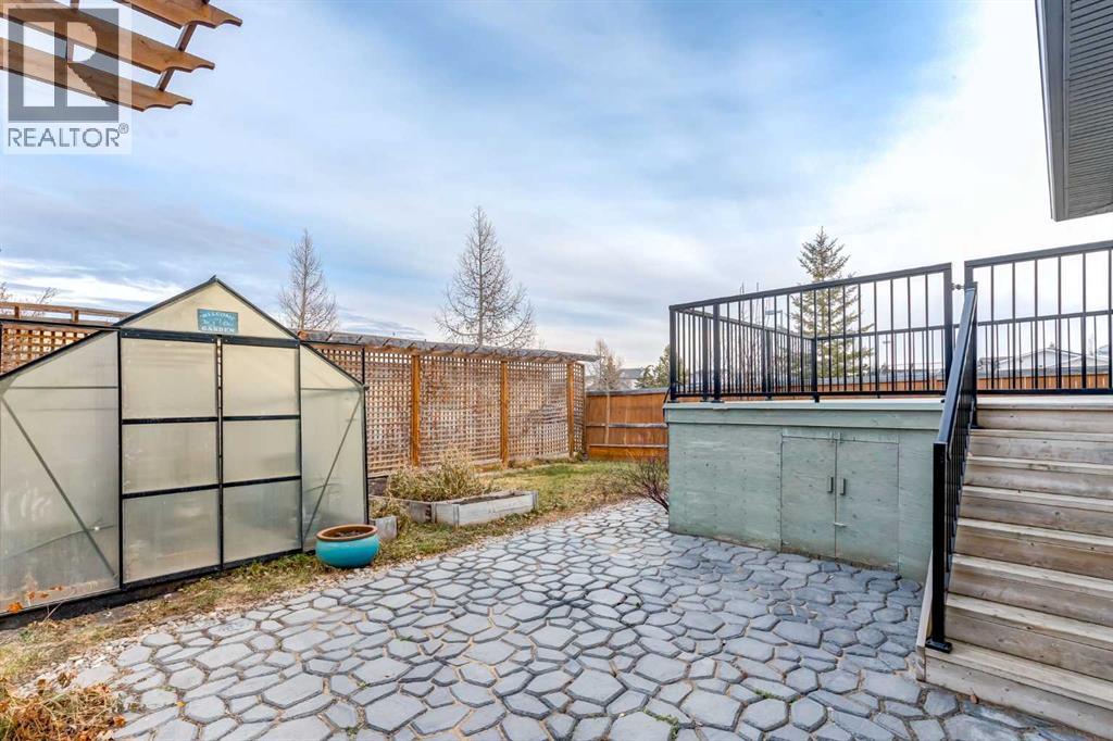 This beautifully maintained home, nestled in the serene canals of Airdrie, offers a perfect blend of comfort and convenience, backing onto green space and a school! The spacious backyard is an absolute highlight, featuring a greenhouse, raised garden beds, a well-maintained lawn, and a large privacy screen along the back fence, ensuring seclusion while you enjoy the outdoors. The expansive back deck, accessible from the eating nook, provides a perfect space for outdoor entertaining, with stairs leading down to a charming patio area. Inside, the open-concept kitchen boasts stainless steel appliances, a corner pantry, and a central island, seamlessly connecting to the eating nook with views of the backyard. The living room is bright and inviting, with a large front-facing window and a cozy fireplace with tile surround and mantle, creating a perfect spot for family gatherings. This level also features three bedrooms, including the spacious primary suite with a walk-in closet and a large window overlooking the backyard and green space. A shared 4-piece bathroom serves these main level bedrooms, offering ample space for family members or guests. The lower level is equally impressive, this fully finished space offers a great sized laundry area, three additional bedrooms, a 4-piece bathroom, and a large rec room with great with natural light. There is endless versatility for this lower level - perfect for a home office, entertainment area, or playroom. With its well-designed layout, plentiful natural light, and thoughtful design, this home offers a charming abode in a highly sought-after neighborhood, combining the best of indoor and outdoor living! (id:58070)