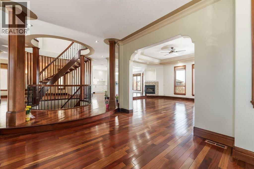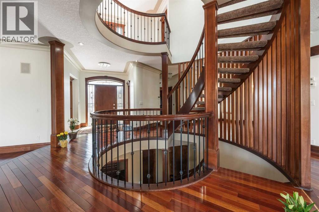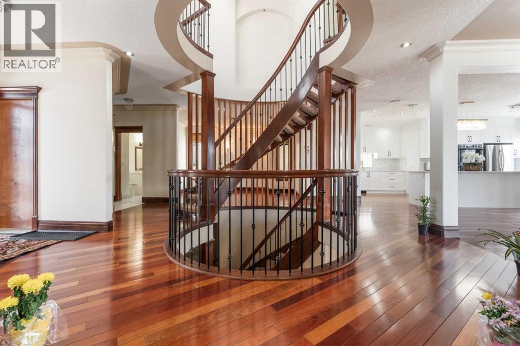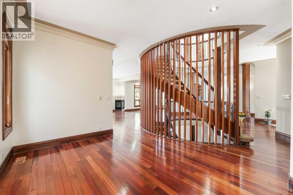 Are you looking for a house like no other, with a unique floor plan? See it to believe it. An extraordinary custom built LUXURY HOME in Calgary’s most sought-after neighborhood. Just moments from the prestigious Calgary French International School, premier shopping, and convenient highways, this stunning 5-bedroom, 4-full, 2-half-bath residence spans over 4500 square feet of sun-filled living space.As you enter, a cozy foyer welcomes you into a world of sophistication. The UNIQUE OPEN SPIRAL STAIRCASE stands as a centerpiece, CONNECTING ALL THREE LEVELS IN A FREE FLOWING LAYOUT. Unlike typical basements, this home embraces an open, airy feel, NO CEILING CUTS THE BASEMENT OFF; instead, the basement, VISIBLE FROM THE TOP FLOOR, invites you into a UNIFIED living experience.The main floor dazzles with 2 expansive living areas, perfect for hosting, and a formal living room with a fireplace. The RENOVATED and UPGRADAED chef’s kitchen is a dream—granite countertops, mostly BRAND NEW APPLIANCES, and a separate SPICE KITCHEN. 3 BALCONIES in the house expand your living space, perfect for summer gatherings, while the home is bathed in natural light from LARGE WINDOWS. Upstairs, enjoy the convenience of a bedroom-level laundry, complete with a SKYLIGHT, while the secondary bathroom also boasts ANOTHER SKYLIGHT, ensuring brightness at every turn.Upstairs, 4 serene bedrooms await, with two sharing a RENOVATED luxurious spa-like bathroom, each with double vanity sinks. The master suite is a private haven, featuring a fireplace, double-door entry, and a spa-inspired ensuite with a jetted tub, steam shower, and walk-in closet. The home offers ample storage, and central air for comfort year-round.The walkout basement is an entertainer’s dream—a cozy living area with a fireplace, a wine cellar, wet bar, bedroom, and den—perfect for guests. With a large garage, a flex room, and abundant storage, every detail is designed for practicality. Bathed in positivity, with abundant windo ws, this home is a masterpiece—where openness, elegance, and a warm family vibe come together. You will appreciate the location of this home surrounded by grocery stores like Co-op, No Frills and Save-on foods and only 12 minutes to the Shouldice park. A great convenience of walking distance to the prestigious Calgary French & International School and just minutes to Webber Academy. Upscale living in a family friendly community, your search ends here..... (id:58070)