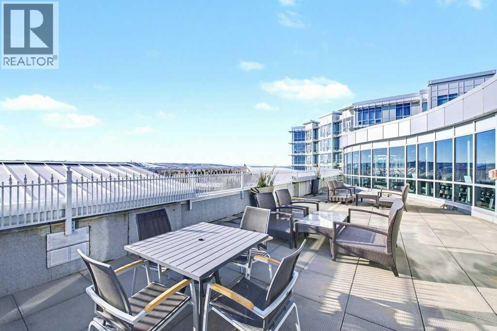 Bright 8th floor 1 bedroom + den in The Groves of Varsity. Floor-to-ceiling windows bring consistent natural light without harsh afternoon heat yet still has central AC for summer comfort. Kitchen offers granite counters, ceiling-height cabinets, and stainless appliances plus pantry for extra storage and durable, easy to clean surfaces. Laminate through living, dining and den gives an open, modern look with simple upkeep. Bedroom has walk-through closet into the tiled 5-pc bath, and in-suite laundry keeps everything contained. Titled underground parking, storage locker, gym, steam room, owners' lounge and rooftop terrace with mountain views add convenience without leaving the complex. Steps to LRT at Dalhousie Station and nearby medical/retail, quick access to U of C and airport for true lock-and-leave living. Call today! (id:58070)
