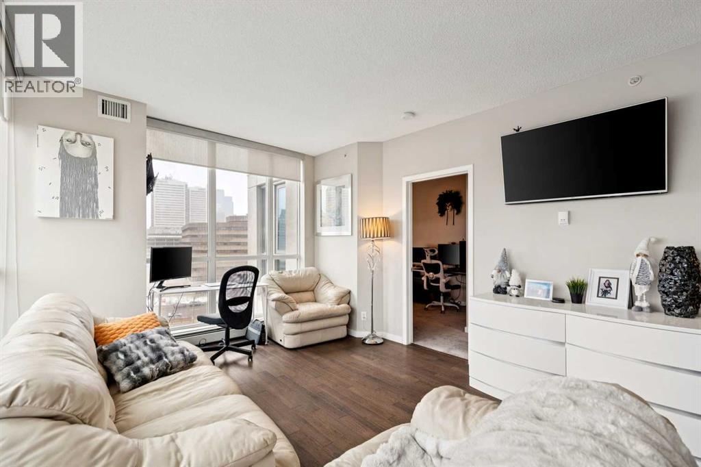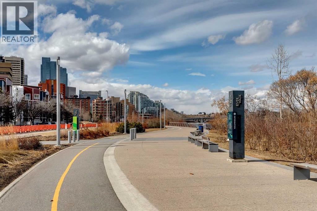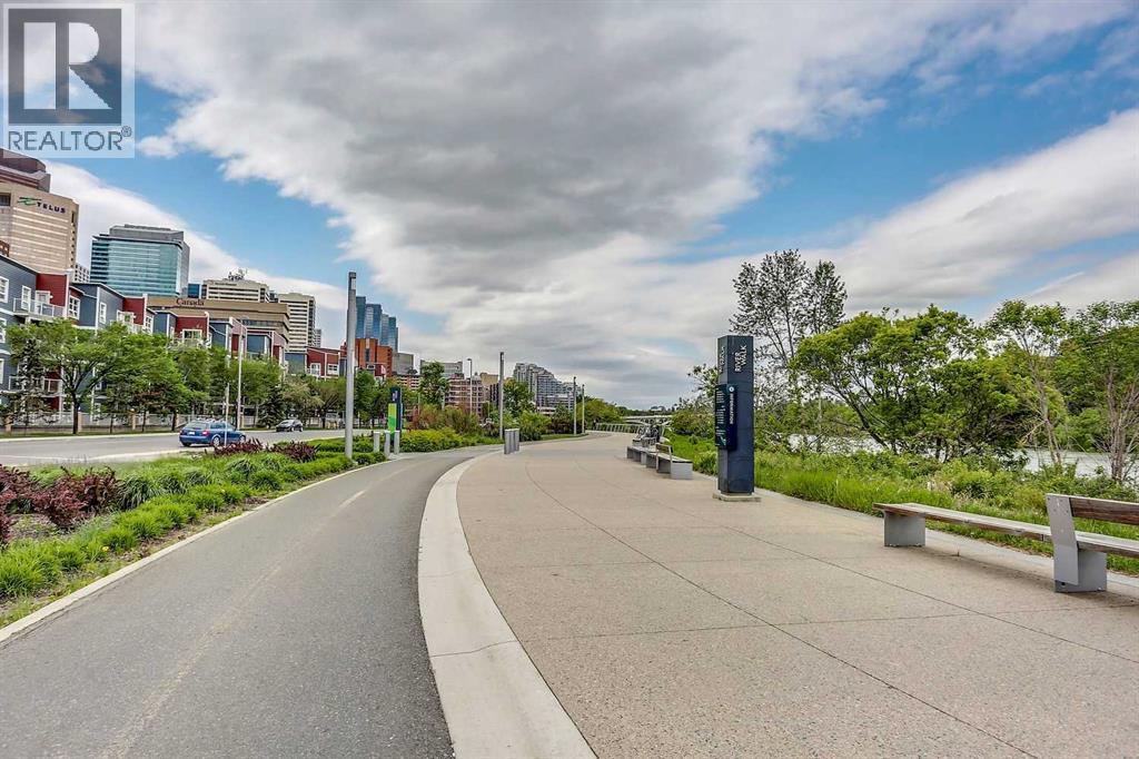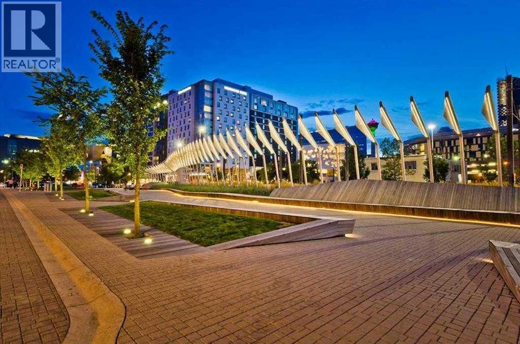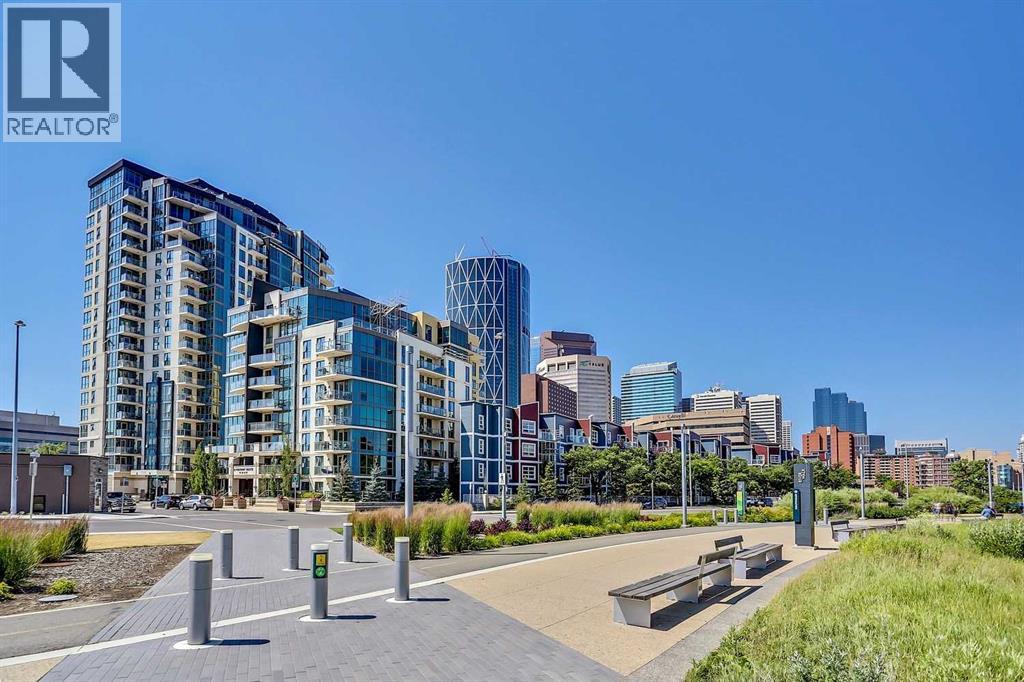 Welcome to Riverfront Pointe—where modern, sophisticated urban living meets everyday convenience in the heart of East Village, one of Calgary’s most vibrant and evolving communities.This thoughtfully designed 2BD/2BA condo offers an ideal layout for urban professionals, couples, or roommates seeking both comfort and flexibility. The MASTER BEDROOM features a full-size closet, 4-piece ensuite, and easily fits a king-sized bed, while the SECOND BEDROOM is generously sized with its own full bathroom—perfect for guests or shared living.FLOOR-TO-CEILING WINDOWS flood the space with natural light, enhancing the open-concept design. The kitchen features S/S APPLIANCES and flows seamlessly into the living and dining areas—ideal for entertaining or unwinding after a long day.Step outside to your expansive S/SW-FACING BALCONY, perfect for summer evenings and front-row views of the Stampede fireworks.A true standout is the RARE TITLED TANDEM PARKING STALL - FITS TWO FULL-SIZE VEHICLES - IN A HEATED, SECURED PARKADE—an exceptional find in a downtown location.Positioned above the third floor—where homes are typically quieter—THIS UNIT OFFERS A PEACEFUL ESCAPE from street-level noise, while still being steps from everything East Village has to offer.Enjoy 24-HOUR SECURITY, an ON-SITE GYM, and unbeatable access to the Bow River pathways, Superstore, Shoppers Drug Mart, Winners, and countless dining and lifestyle amenities.With the NEW EVENT CENTRE AND ENTERTAINMENT DISTRICT just a few blocks away, East Village continues to evolve—making this not only a home, but a smart investment in location and lifestyle.Set on a quiet cul-de-sac with ample visitor parking and pet-friendly (with board approval), this building offers both comfort and convenience.Units with this combination of layout, location, and titled tandem parking rarely come available—don’t miss this opportunity. Call your favourite realtor and book a private showing today! (id:58070)