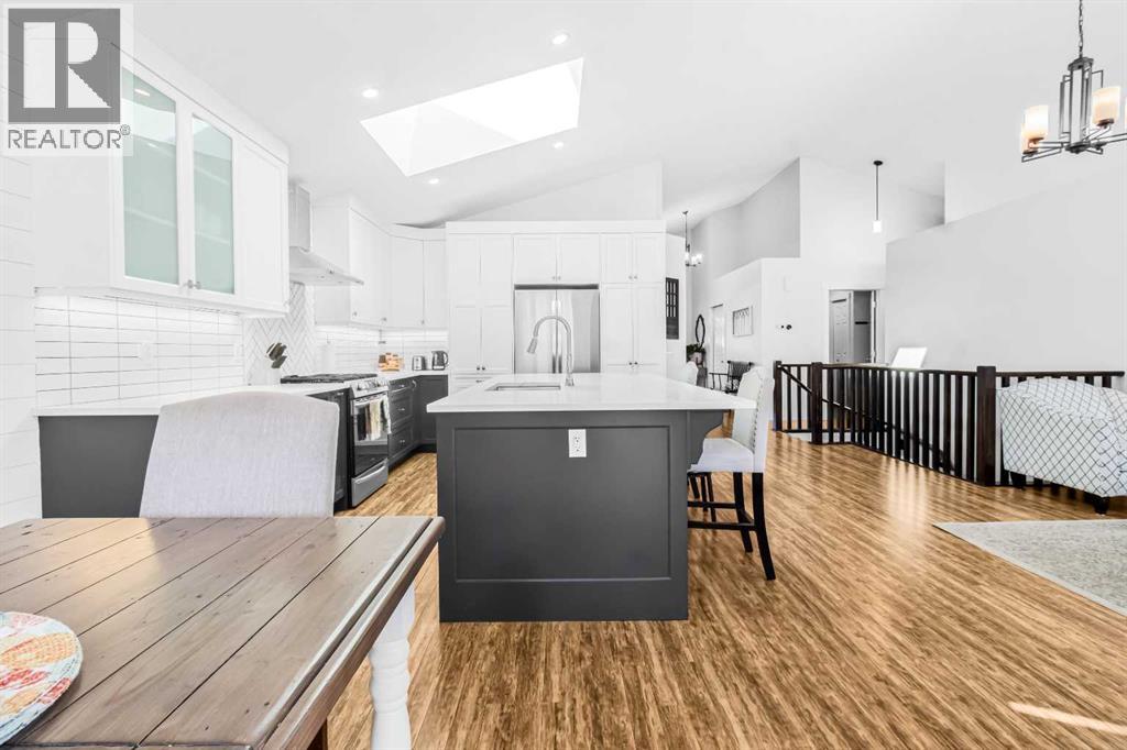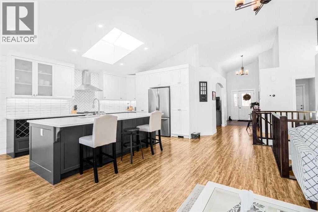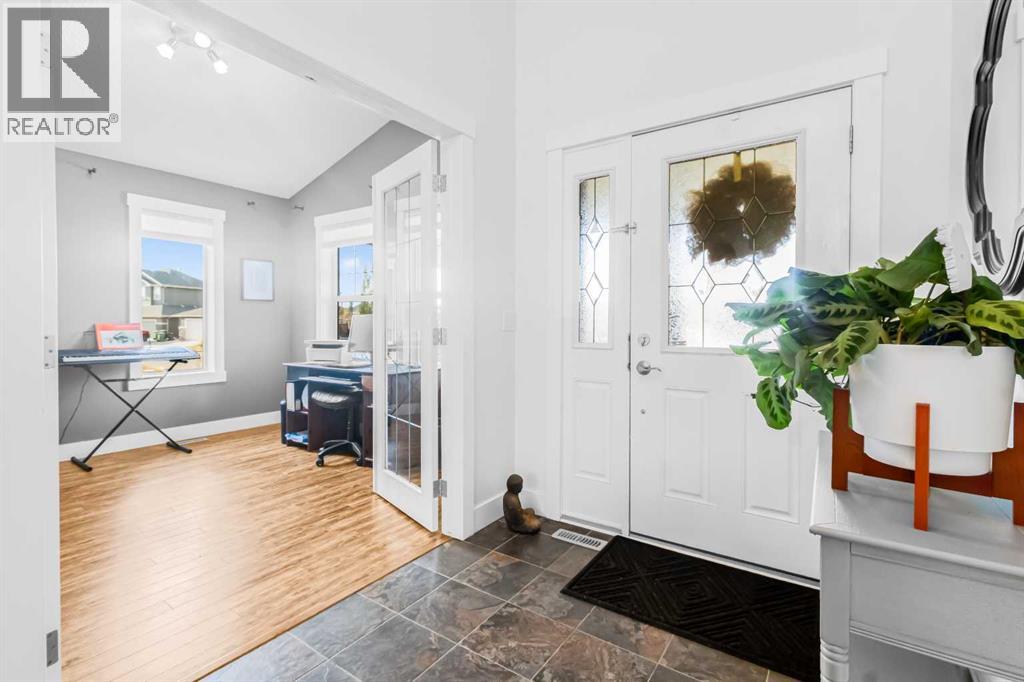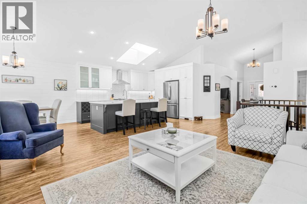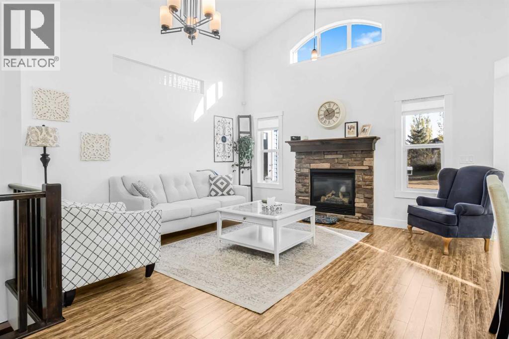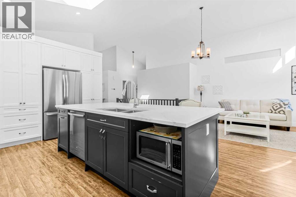 Welcome to Boulder Creek Estates in Langdon, where small-town charm meets refined bungalow living. This immaculate, fully finished 4 bedroom, 3 bath, 1800 sq ft bungalow offers over 3,000 sq ft of beautifully designed living space with vaulted ceilings, a triple car garage, and central air conditioning. A formal dining room and large den offer versatility for entertaining, working from home, or quiet relaxation. The chef-inspired kitchen features granite countertops, stainless steel appliances, a gas stove, skylight, and ample cabinetry, flowing into a warm living room with a gas fireplace. The spacious primary suite includes a stylish barn door and a luxurious 5 pc ensuite. The fully developed lower level adds a large recreation room with a second gas fireplace, two additional bedrooms, generous storage, and the convenience of two laundry rooms. Situated on a private reverse pie lot backing onto green space, the landscaped backyard with underground sprinklers creates a peaceful outdoor retreat. Boulder Creek Estates is a vibrant community with nearby amenities including Boulder Creek Golf Course, the Langdon Fieldhouse, skatepark, playgrounds, schools, and local shops and restaurants, scenic walking paths, and convenient access to major commuting routes.Thoughtfully upgraded and meticulously maintained, this exceptional home offers space, comfort, and elegance just minutes from Calgary. (id:58070)