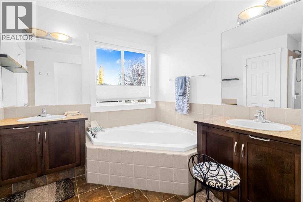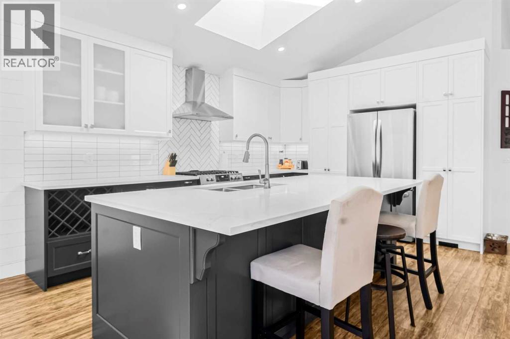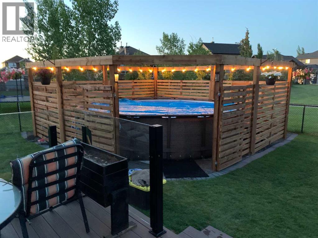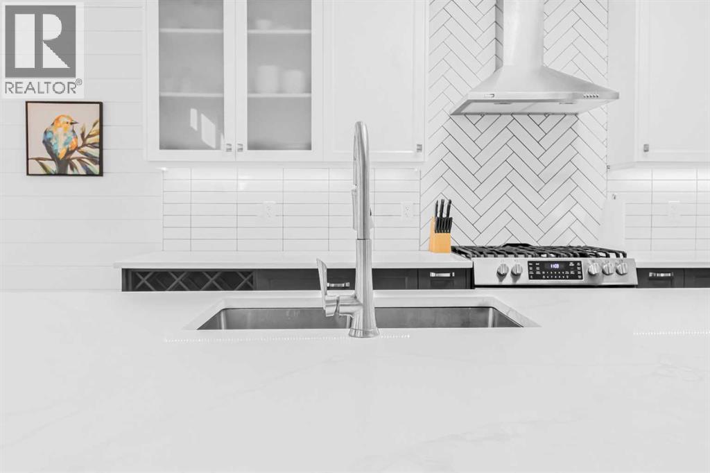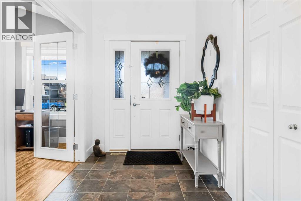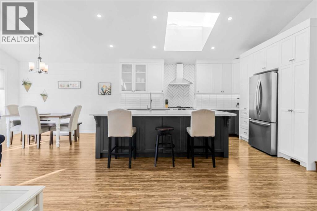 Welcome to Boulder Creek Estates in Langdon, where small-town charm meets refined bungalow living. This immaculate, fully finished 4 bedroom, 3 bath, 1800 sq ft bungalow offers over 3,000 sq ft of beautifully designed living space with vaulted ceilings, a triple car garage, and central air conditioning. A formal dining room and large den offer versatility for entertaining, working from home, or quiet relaxation. The chef-inspired kitchen features granite countertops, stainless steel appliances, a gas stove, skylight, and ample cabinetry, flowing into a warm living room with a gas fireplace. The spacious primary suite includes a stylish barn door and a luxurious 5 pc ensuite. The fully developed lower level adds a large recreation room with a second gas fireplace, two additional bedrooms, generous storage, and the convenience of two laundry rooms. Situated on a private reverse pie lot backing onto green space, the landscaped backyard with underground sprinklers creates a peaceful outdoor retreat. Boulder Creek Estates is a vibrant community with nearby amenities including Boulder Creek Golf Course, the Langdon Fieldhouse, skatepark, playgrounds, schools, and local shops and restaurants, scenic walking paths, and convenient access to major commuting routes.Thoughtfully upgraded and meticulously maintained, this exceptional home offers space, comfort, and elegance just minutes from Calgary. (id:58070)