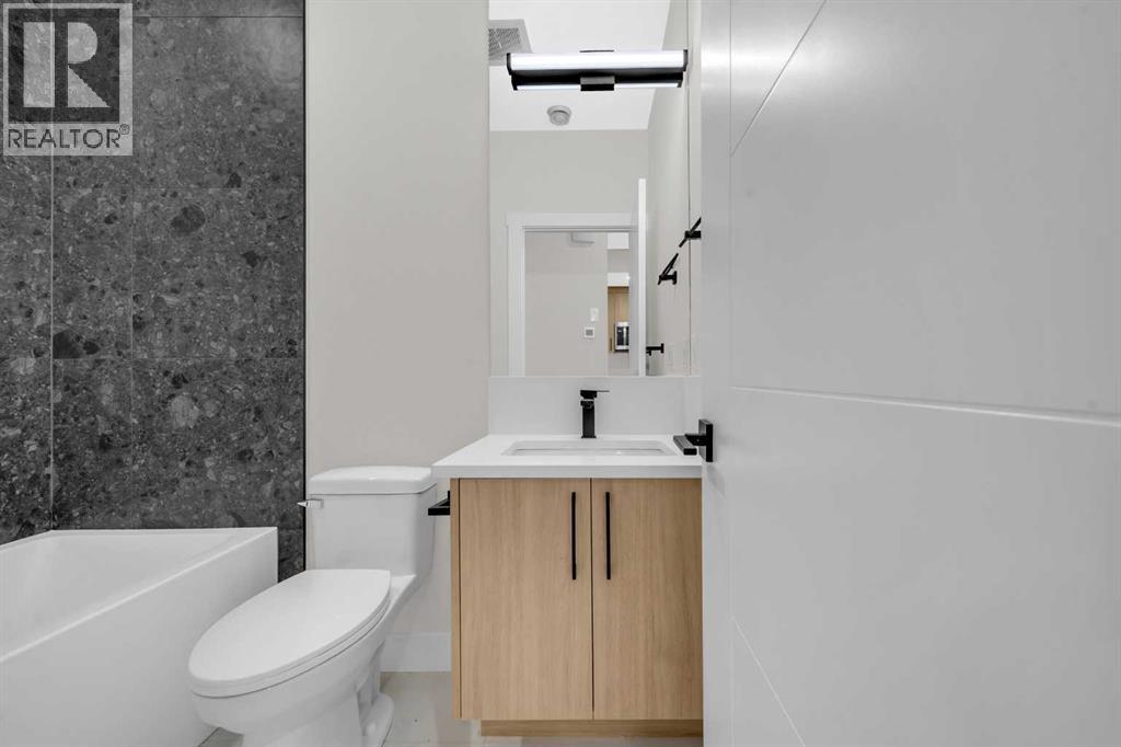 Calling all Investors! Looking for a brand new SXS Duplex with legal basement suites? This 8114 unit can be sold together with attached 8112 to provide an excellent cash flowing opportunity with the convenience of having all construction materials and components still under New Home Warranty. Both 8114 and 8112 are rented on long term leases with tenants who would prefer to stay. This unit rents monthly at $3100 for the upper suite + 70% utlitles and $1250 + 30% utilities for the lower suite. Amazing home boasting elevated design and incredible functionality, featuring a legal 2-bedroom basement suite and a sunny south exposed front with expansive valley views from the upper floor. Every detail was thoughtfully selected, from the wide-plank modern floors to the curated lighting and premium finishes throughout. Step inside to a bright, open-concept main floor with 10' ceilings, oversized windows and neutral tones that create an airy, inviting vibe. The large, well-lit dining room is perfect for bigger families and/or hosting guests and shows off a vibrant and colourful feature wall, which flows seamlessly into a designer kitchen featuring modern warm toned cabinetry, paired with beautifully coloured glass backsplash, quartz countertops, matte black hardware, a huge walk-in pantry with built-in shelving, and a perfect-sized center island with bar seating with more natural wood tones, bringing everything together beautifully. The upgraded stainless steel appliance package includes an oversized sub zero fridge with french doors, a gas cooktop with stylish hood fan, and a thoughtfully placed wall oven and microwave. The rear living room is wide and spacious featuring additional large windows plus a cozy gas fireplace with stone surround and custom mantle, and which leads you out to the large backyard, which features an oversized concrete pad, perfect for end of the day BBQ's and lounging. An enclosed mudroom with a large closet area and a sleek powder room that comes wit h a raised matte black sink complete the mainfloor. Upstairs contains the three large bedrooms, all with trayed ceilings, including the primary bedroom which is a true retreat that features a large walk-in closet with several custom built-ins plus a hotel like ensuite. Enjoy heated tile flooring, dual sinks, quartz countertops, matching tile surrounds, plus a free standing soaker tub and an oversized glass shower with rain shower head and roughed-in for steam. The upper laundry room comes with a sink, quartz countertops, additional wood toned cabinetry, and is situated beside the stylish full bathroom which features a tiled tub/shower combo. Downstairs features the thoughtfully designed legal 2 bedroom suite and features 9' ceilings, luxury vinyl plank flooring, wonderfully warm toned cabinetry, stainless steel appliances and lots of pot lighting. A full bathroom with elegant tile is also featured plus a dedicated laundry room, separate side entrance and storage, making this perfect for rental income. (id:58070)