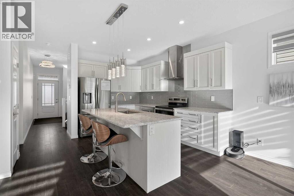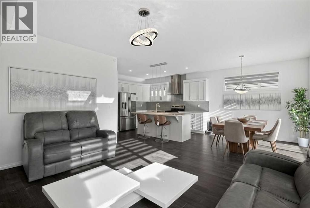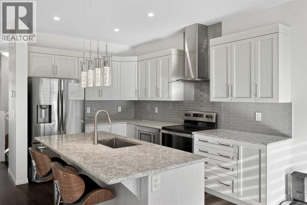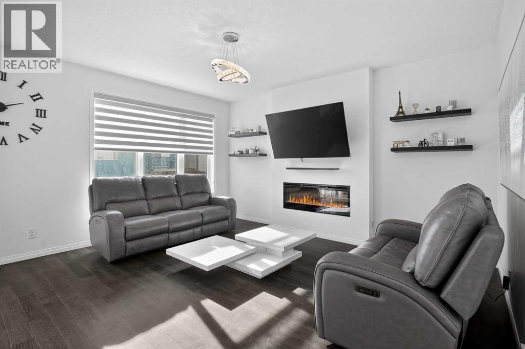 Welcome to this stunning 2019-built two-storey home offering modern design, thoughtful upgrades, and functional living space throughout. With 3 bedrooms, 2.5 bathrooms, and a FRONT-ATTACHED garage, this detached home blends comfort and style in an ideal family-friendly setting. Step inside to a bright, open-concept main floor filled with natural light from expansive windows. The spacious living room is anchored by a cozy FIREPLACE, creating a warm and inviting focal point for relaxing evenings or gathering with family and friends. The living area flows seamlessly into a beautifully upgraded kitchen featuring QUARTZ countertops, a striking backsplash, a large central island, upgraded electric range, built-in microwave, chimney-style hood fan, dishwasher, and ample cabinetry — perfect for both everyday living and entertaining. Upstairs, you’ll find 3 bedrooms including a well-appointed primary retreat complete with a spa-inspired 5-piece ensuite featuring quartz countertops, a DUAL VANITY, and a freestanding SOAKER TUB, along with a walk-in closet. A convenient upper-level laundry room with additional storage and a full 4-piece bathroom complete the second floor. The basement is currently undeveloped but fully functional, offering excellent potential for future development - whether you envision a recreation room, additional bedroom, or home gym. It’s a clean slate ready to grow with your needs. Enjoy sunny mornings on the oversized FRONT PORCH and appreciate the protection and convenience of the attached garage. Stay comfortable through every season with CENTRAL AIR CONDITIONING to keep you cool during the summer months. Located close to Windsong Heights School, Northcott Prairie School, and W.H. Croxford High School, this home is surrounded by incredible amenities. Chinook Winds Regional Park, splash parks, tennis courts, skating rinks, pathways, shopping, and daily conveniences are all just minutes away. A move-in-ready home with room to grow, in a vibrant and conn ected community, this one truly deserves a spot on your must-see list. (id:58070)