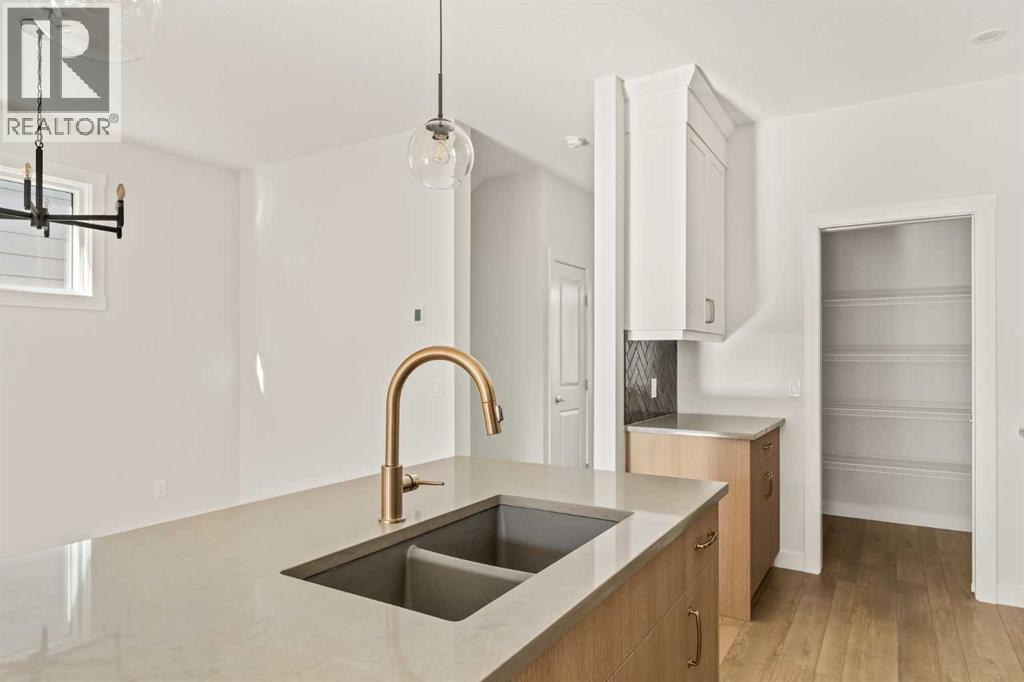 This brand new home, the 'Oxford', is an incredible opportunity in the desirable new community of Rockland Park and ready for immediate possesion! This home is situated on a bright and sunny lot with a southeast facing front yard - allowing natural light to pour through the main level all day long while offering west sun in the backyard during the evening. Featuring 3 bedrooms, 2.5 bathrooms and two living spaces + a home office / flex space and an undeveloped basement with a private side entrance, this property is perfect for investors, multi-generational living or those that want a large family home with space to grow! Built by Brookfield Residential, the Oxford is a stunning home boasting nearly 2,000 square ft. of living space. This open concept main floor has 9 ft. ceilings and extended height cabinets and a large island with a gourmet kitchen package including chimney hood fan, built-in microwave and gas range. The main floor features a large great room with plenty of natural light and a main floor flex space with double doors for added privacy - making it perfect for a work-from-home space! Luxurious and resilient LVP and tile flooring flow throughout the main level, making it perfect for those with children and pets. The upper level features a central bonus room that separates the primary bedroom from secondary rooms. Enjoy the luxury of this large primary suite that spans nearly 13'x13' and is complete with a beautiful ensuite bathroom with dual sinks and a walk-in shower. Two more bedrooms, a full bathroom and a laundry room complete the second level. The basement has direct access via a side entrance and is undeveloped but includes 9' foundation walls and rough-ins for a future suite (subject to City of Calgary approval)! Completing the home is a rear BBQ gas line for daily convenience and a double gravel parking pad with ample space to accommodate a garage if desired in the future. This home is brand new and comes with builder warranty + Alberta New Home Warranty! (id:58070)
