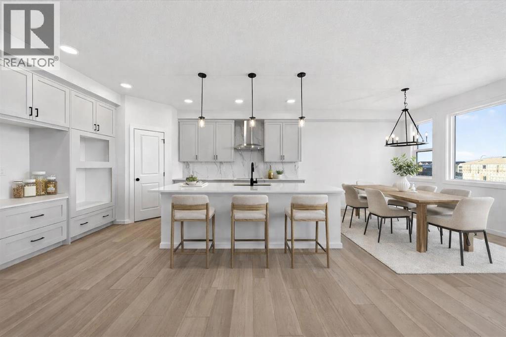 IF YOU’VE BEEN SEARCHING FOR A MOVE-UP HOME THAT ACTUALLY FEELS WORTH IT, HERE IT IS.This Hemsworth model in Vermilion Hill delivers four bedrooms and three full baths — including a MAIN-FLOOR BEDROOM with a fully tiled shower that makes multi-generational living, long-term guests, or a private office feel completely natural.Now let’s talk about the heart of the home — because it deserves your attention.The kitchen delivers exactly what a move-up should: a GAS COOKTOP, BUILT-IN WALL OVEN, and CHIMNEY HOOD FAN backed by tile to the ceiling, paired with tall cabinetry, pot drawers where they belong, and quartz surfaces that elevate everyday life. A WALKTHROUGH PANTRY connects directly to the mudroom and garage entry — keeping groceries, backpacks, and real-life mess moving quietly out of sight.Upstairs is where this home really opens up. The BONUS ROOM anchors the level, while the OPEN-TO-BELOW design looks over the two-storey great room and its FULL-HEIGHT FIREPLACE FEATURE WALL — a vertical moment that adds scale and drama you simply don’t expect. The primary retreat delivers a true five-piece ensuite with DUAL SINKS, a DEEP SOAKER TUB, and a TILE-AND-GLASS SHOWER, flowing into a walk-in closet that connects directly to the laundry room (because someone was thinking about real life). And the secondary bedrooms? Both come with walk-in closets — no afterthoughts here.And then there’s the SUNSHINE BASEMENT. Nine-foot foundation walls, large windows and a SEPARATE EXTERIOR ENTRY create light and space that’s ready for whatever your next chapter looks like — extended family, future development, or the flexibility you’ve been craving.Vermilion Hill is one of Calgary’s newest southwest communities, defined by BIG-SKY VIEWS, cohesive architecture, and streetscapes designed to feel polished from the start. Wide boulevards, planned parks, and connected pathways create a neighbourhood that already feels established rather than pieced together, with QUICK ACCESS TO MAJOR ROUTES and everyday amenities. And its DARK SKY DESIGNATION preserves those clear, starlit evenings — a rare touch in a new Calgary neighbourhood.IMMEDIATE POSSESSION means no waiting — just a move-up home that makes you glad you did. Call your agent and BOOK A SHOWING, you’ll thank me later. • PLEASE NOTE: Photos are of another spec home of the same model – fit & finish may differ. Interior selections & floorplans shown in photos. (id:58070)