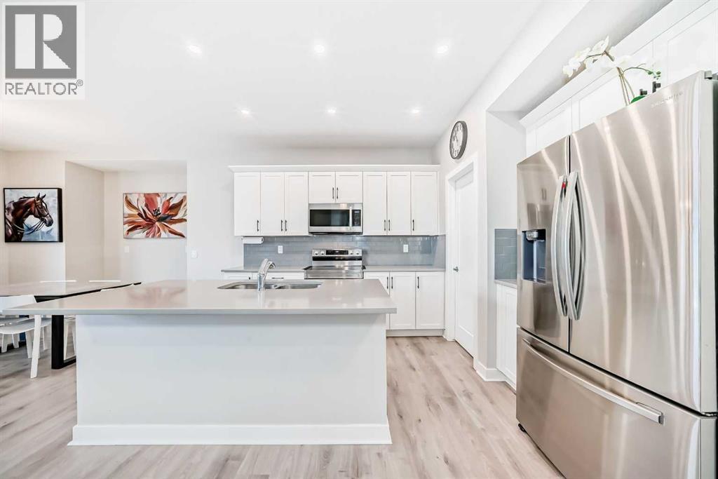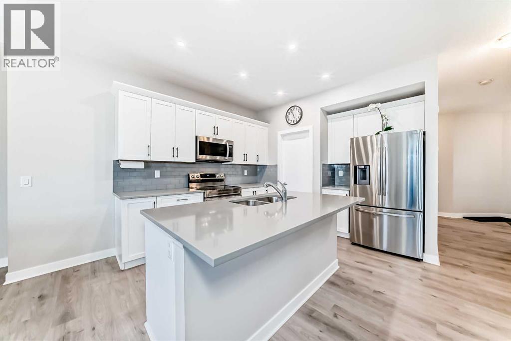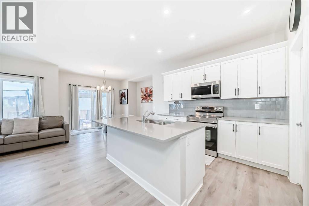 Welcome to Hampton Hills in High River. This well-maintained 4-bedroom, 2.5-bath home, built by Timber Creek Homes in 2021 offers over 2170 square feet of developed living space with 9-foot ceilings on both the main floor and basement family room. Step inside to a bright and open-concept layout, where the spacious living and dining areas flow seamlessly into a modern kitchen. The kitchen features ample cabinetry, a large island with quartz countertops, and stylish finishes-perfect for both everyday living and entertaining. A convenient 2-piece powder room completes the main level. Upstairs you'll find a generous primary bedroom with a walk-in closet and a 4-piece ensuite , along with two additional spacious bedrooms and another 4-piece bathroom off the hallway. The partially finished basement includes a cozy family room and a fourth bedroom. A bathroom with tub is partially finished -offering the new owner the opportunity to finish it to their taste. There's also potential for a future laundry area or a den/flex room - ideal for a gym or home office. Additional features include a double attached garage, a finished deck, and low-maintenance landscaping in both the front and backyard. Located in a quiet community close to schools, parks, and shopping, this home is perfect for families or investors. Don't miss out-book your showing today! (id:58070)