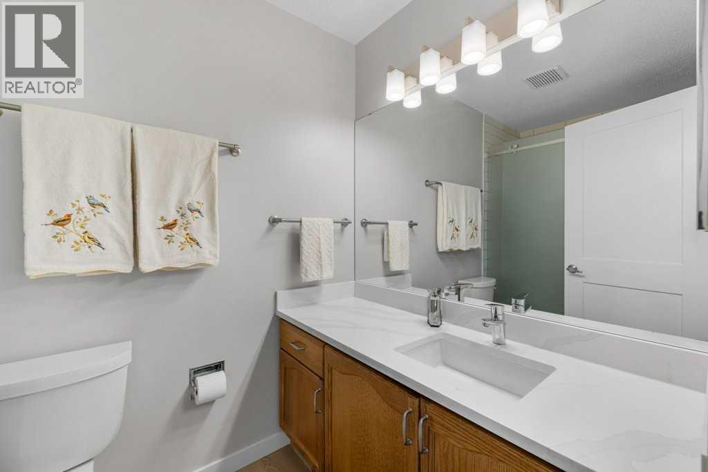 Are you looking for a quiet bungalow villa but need a location where grandkids have plenty to do? How about a 50+ villa backing on a greenspace with a playground, and tennis courts (plus pickleball), and two soccer fields and a baseball diamond, all visible from your living room! When you move into a Horizon Village community you gain not only a lovely villa, but a whole new lifestyle with plenty of new friendships centered around the community clubhouse for social events. Are you thinking of doing fewer chores and having more fun? You can throw away your lawnmower and your snow shovel here. Come see 83 Macewan Park Heights! The front of this home is welcoming, nicely landscaped with an attractive sandstone retaining wall and a patio to sit and sip your morning coffee. Step in the front door to this beautiful bungalow with attached garage. This villa is wide, giving lots of windows at the back of the home for plenty of natural light. Great floor plan! You will love the vinyl plank flooring - durable and attractive! Two bedrooms on the main level , one with a built-in hide-a-bed so you can use the space for an office or a guest bedroom. The primary bedroom has a two-piece ensuite that you don't find in many of these villa floor plans. The spacious u-shaped kitchen has open sight lines to the dining and living rooms, plus the outdoor deck, and the green space out back! You will love sitting on the back deck with no other homes out back. The lower level has a spacious rec room with tv area (and a corner fireplace to keep the basement cozy all year round), plus another full bathroom and a hobby room or office area if you prefer. So many updates and upgrades! Recent improvements include: Basement surround speakers and Central Air Conditioning in 2016. Three new toilets plus a major upgrade to triple pane patio door and triple pane windows throughout the home in 2018. Upgraded thermostat and fan for the fireplace in 2019. Vinyl p lank flooring plus a new driveway in 2020. New dishwasher and water heater in 2021. Queen-sized murphy bed and a new washing machine in 2022. The main and ensuite bathrooms were very nicely renovated in 2021. New interior doors, baseboards and trim on the main level (plus new custom Hunter Douglas blinds) in 2023. New front door, screen and smart lock in 2024, plus a new roof in 2024! Walking distance to Macewan Plaza or a short drive to several major shopping outlets. There is great value in this villa! Book your showing today! (id:58070)