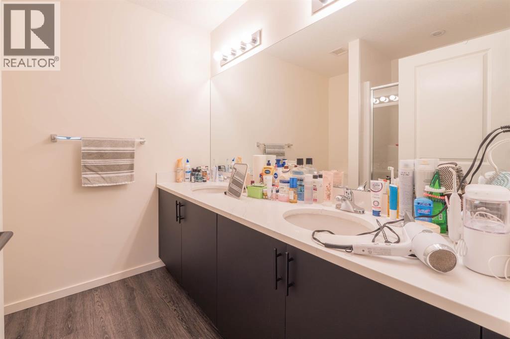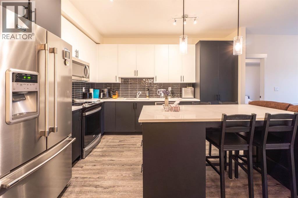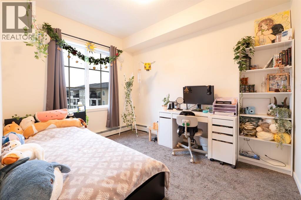 Welcome to Legacy, where modern design meets everyday convenience! This top-floor condo offers 768 sq. ft. of thoughtfully designed living space with 2 bedrooms and 2 full bathrooms, including a private primary suite with a walk-in closet and 4-pc ensuite. The open-concept kitchen features sleek two-tone cabinetry, quartz countertops, an island with seating, and stainless steel appliances — perfect for cooking or entertaining. The spacious living room flows seamlessly to a large balcony, ideal for BBQs and outdoor dining while enjoying views of the community. Additional highlights include in-suite laundry, luxury vinyl plank flooring, 9-foot ceilings, and air conditioning for year-round comfort. There are upgrades worth of 20k. The second bedroom is perfect for a family, guests, or a home office, complemented by another full 4-pc bath. This unit comes with titled surface parking and secure building access with elevator service. The complex is just steps from shopping, restaurants, schools, playgrounds, transit, and pathways, with quick access to Macleod Trail and Stoney Trail for easy commuting. Whether you’re a first-time buyer, downsizer, or investor, this home checks all the boxes for style, comfort, and location. (id:58070)