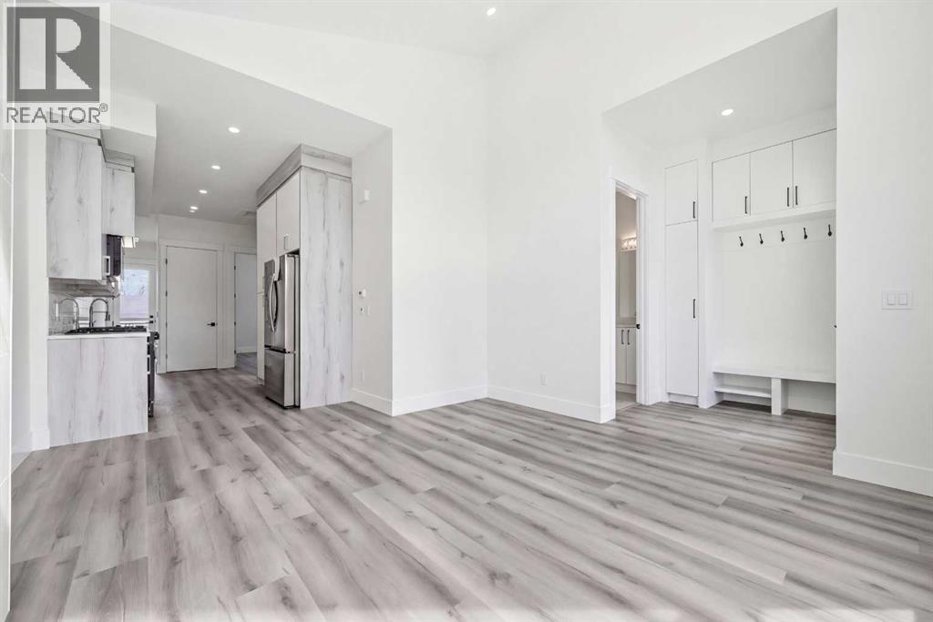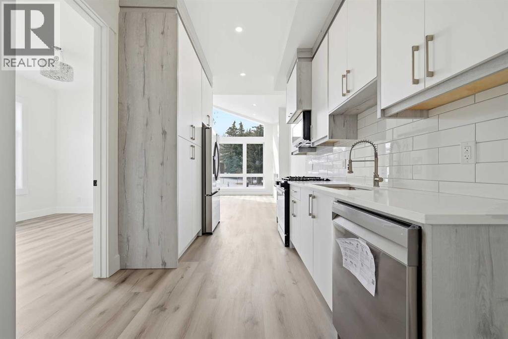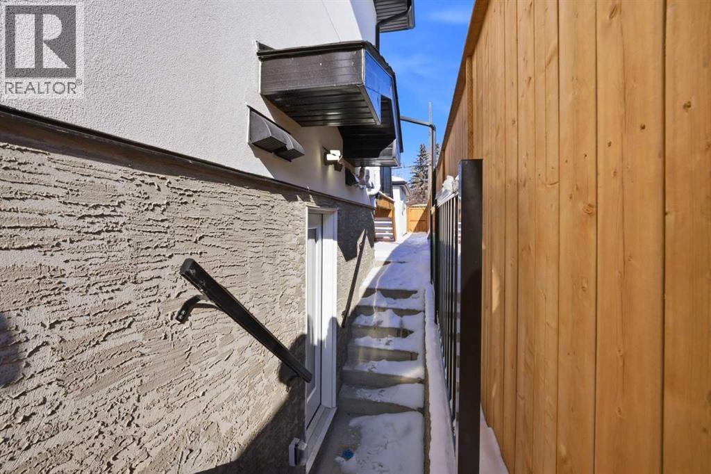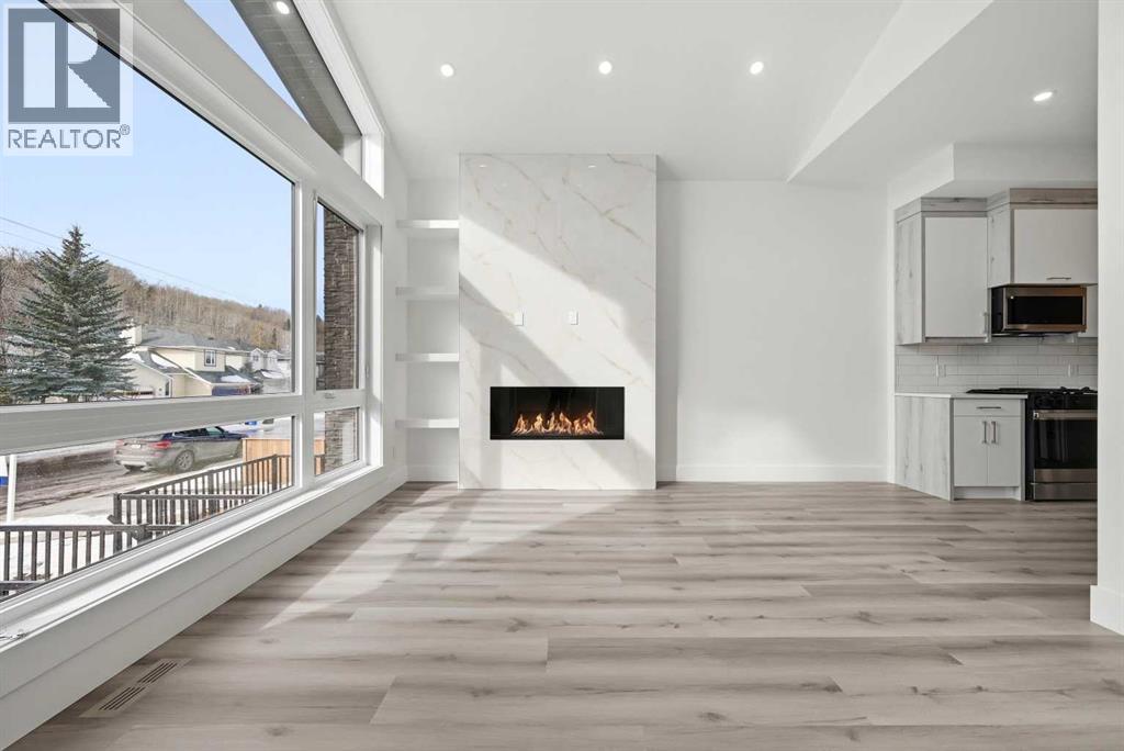 An excellent opportunity to own a newly built, architecturally refined residence in the heart of Bowness, one of Calgary’s most charming and sought-after communities.Thoughtfully designed with both elegance and versatility in mind, this semi-detached home seamlessly blends elevated modern living with outstanding income potential through its fully legal two-bedroom basement suite. The main level is defined by dramatic sloped ceilings and an abundance of natural light, creating an airy, sophisticated atmosphere. At the heart of the home, a beautifully curated kitchen showcases premium appliances, sleek contemporary finishes, and refined detailing, a space perfectly suited for quiet mornings and effortless entertaining alike.Two well-appointed bedrooms and a stylish full bath and a powder room complete the main floor, offering comfort and functionality without compromising design.The fully legal 2 bedroom walkout lower-level suite continues the home’s elevated aesthetic, featuring rare high ceilings, a fireplace, a bright and thoughtfully designed layout, and a private patio that enhances its strong rental appeal. Whether for extended family, guests, or additional income, the flexibility is exceptional.Outside, a private backyard and detached double garage provide everyday convenience, while the location offers immediate access to river pathways, parks, and outdoor recreation. Just minutes from Canada Olympic Park, with quick connections to downtown Calgary and the mountains, this address delivers an unbeatable lifestyle balance.A rare combination of architectural design, income versatility, and location. This is modern living redefined. (id:58070)