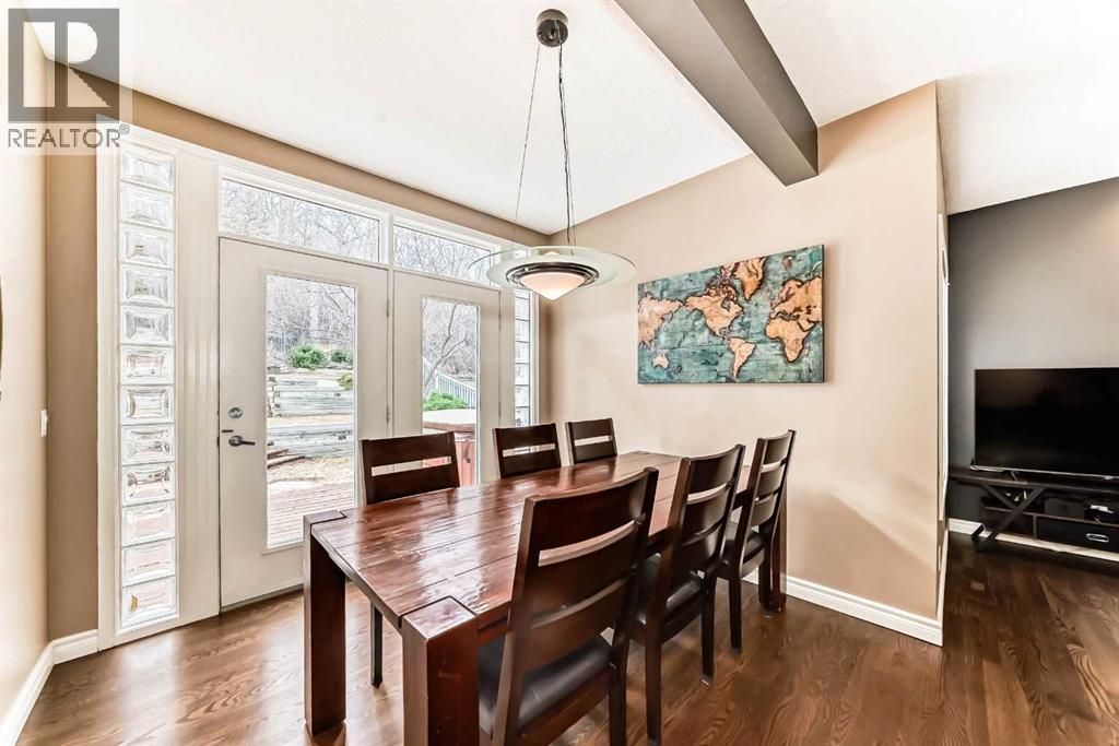 This exceptional home offers a rare combination of luxury, seclusion, and convenience, making it a true gem in an ideal location. Nestled on a tranquil, heavily treed lot that backs onto a forest, this custom-built, contemporary 2-storey home provides privacy and a serene living environment right in your backyard. Spanning over 2,400 sq. ft., this non-smoking, no-pet home showcases an open-concept design with beautiful hardwood flooring and 9-foot ceilings throughout the main floor. The large foyer leads to a well-appointed office that overlooks the manicured front yard, creating a welcoming first impression. The spacious living room features an attractive granite fireplace, adding both warmth and elegance to the space. The kitchen is a true highlight, equipped with a pantry, breakfast bar, and high-end stainless steel appliances. Garden doors from the dining room lead to a massive southwest-facing deck, perfect for entertaining or enjoying peaceful moments in the hot tub while appreciating the natural beauty of the surroundings. You'll love the natural gas hook-up for your bar-b-cue or even patio heater on those chilly evenings. Upstairs, the home boasts three generously-sized bedrooms. The master suite is particularly impressive, offering a walk-in closet, a private balcony, and a deluxe ensuite with modern fixtures. Full-width picture windows in the master bedroom and throughout the home provide stunning views of the lush backyard and forest, ensuring that the beauty of each season is always on display.The upper level also includes a 4-piece main bath with a deep soaker tub. The fully developed lower level adds even more functional living space, featuring a family room, a 4th bedroom, and a bathroom with a shower. The laundry and storage areas are conveniently located on this level as well. The home is completed with a double attached garage, featuring a workbench and ample storage shelves, providing practicality and organization. The location is unbeatable, wit h a quiet street just a short walk from local schools, bus stops, and bike paths. A few blocks away, you’ll find the scenic Bowness Park, the river, shopping, and the bustling Farmer’s Market. Plus, with quick access to downtown, the University, hospitals, and Banff, this home is perfectly positioned for both convenience and tranquility. (id:58070)