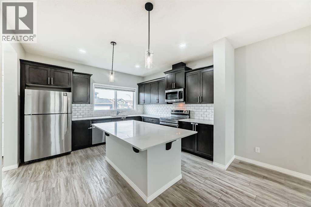 This almost-new, corner lot duplex in Cornerstone is ideally located with a front-facing park, offering both peace and convenience.Just a minute’s walk from a beautiful pond, the home features a modern open-concept design with a spacious living room, elegant dining area, and achef-inspired kitchen with a stunning center island, stainless steel appliances, and a large pantry. Beautiful cabinetry with clean, modern look. Stainless steel appliances for a stylish touch. Large pantry for all your storage needs Bright, wide window flooding the space with natural light. Upper-Level Comfort- 3 spacious bedrooms + a versatile bonus room, Primary room with a 3-piece ensuite & walk-in closet. Additional common bath for convenience. Unfinished Basement – Endless Potential! 9-ft ceilings for a spacious feel, Separate exterior entrance. Two egress-sized windows for natural light & safety. Rough-ins for a future bathroom – customize to your needs. Prime Location & Unbeatable Convenience! Steps from playgrounds, shopping & the new Chalo FreshCo Plaza. 5 minutes to CrossIron Mills Mall. 10 minutes to Calgary International Airport. Quick access to Deerfoot & Stoney Trail – easy commuting! This gem won’t last long! Book your private showing today! (id:58070)