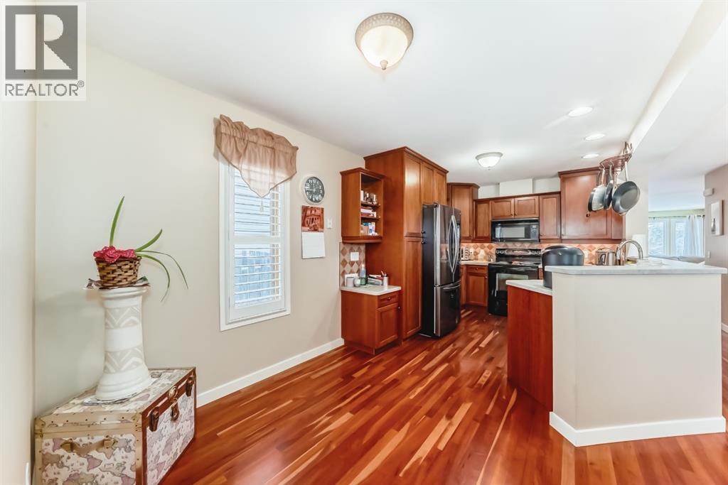 This 1,784 sq. ft. home is situated on an extra-length 4,499 sq. ft. lot on a quiet street near local parks. The interior features cherry hardwood flooring and a kitchen with solid wood Merritt cabinetry, under-cabinet lighting, and a new refrigerator (2024). A central skylight over the stairwell provides natural light to the upper level, which includes three bedrooms and an enclosed computer nook designed for use as a private office or library. The oversized primary suite accommodates a chaise lounge and features an ensuite with a deep soaker tub. The finished basement adds a fourth bedroom and a full bathroom. For the hobbyist, the oversized 2x6 construction double garage w 9ft ceilings includes a separate electrical panel with 220V power and a natural gas line ready for a heater connection. Attached to the garage is an unfinished 10x10 studio room, currently used for motorcycle parking, offering potential for a workshop or hobby space. The south-facing yard is landscaped with a stamped concrete patio, a covered deck, and new concrete paver stones ready to be installed in the front flower beds. Maintenance updates include 60% new metal-clad UV-coated casement windows (2020), a new roof, skylight, and gutters (2017), and a new hot water tank (2017). The exterior front steps and railing were replaced in 2023, with the back porch steps and railing updated in 2024. Functional features include a laundry chute from the second floor to the basement, a gas fireplace, a humidifier (2023), and an alarm system. This property offers a functional layout and quality finishes in a quiet residential setting. (id:58070)