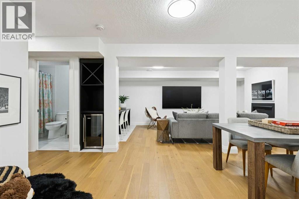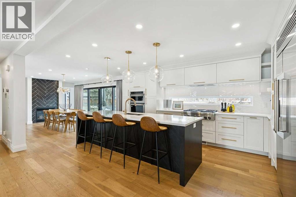 Introducing an exceptional opportunity in Lake Bonavista on a private Cul-de-Sac, facing a green space — A premium executive residence designed for families who value refined living + effortless functionality. Perfectly positioned on a rare 716 m² estate-sized lot, just steps to the lake, schools, shopping + convenient access routes. Contemporary in flavor with uncompromising attention to detail, this open-concept home showcases engineered hardwood flooring throughout — including the upper + lower levels (2024) — with absolutely no carpet anywhere. High-end windows, updated plumbing + electrical, HE furnace, air conditioning (2025), flat ceilings, fresh stucco + paint, LED lighting, custom built-ins, designer tile work in cement/porcelain/marble, quartz counters + custom glass accents create a polished + cohesive aesthetic from top to bottom. The heart of the home is a stunning renovated kitchen featuring a statement island, professional-grade appliances, gas cooktop + sleek custom cabinetry. The expansive informal dining room is anchored by a beautiful gas fireplace which allows for seamless indoor-outdoor living as the interior flows effortlessly to the private backyard through newly installed (2024) expansive Lux sliding doors. A dedicated main floor office offers the perfect work-from-home solution, while the oversized mudroom with built-in lockers keeps busy family life beautifully organized. The double attached garage offers generous space for vehicles and storage, now enhanced with a dedicated 240V/50A circuit (2024) for high-speed EV charging. This infrastructure is supported by a newly installed (2024) 200-Amp electrical panel, making the home solar-ready for immediate installation without the need for further utility upgrades. Upstairs, four well-sized bedrooms with built-in closets await, along with convenient upper laundry. The primary suite is a true retreat — privately positioned as its own wing — featuring a walk-in closet + a spa-inspired ensuite with heated marble floors, dual vanities, stand-alone shower + luxurious soaker tub. A charming family bath completes the upper level. The fully developed lower level expands your living space with a large family room featuring a gas fireplace, dedicated gym area, play space, a guest room + a full bath. Outdoors, enjoy a huge new Timbertech deck (2024) surrounded by mature landscaping — a private setting perfect for summer gatherings + quiet evenings alike. (id:58070)