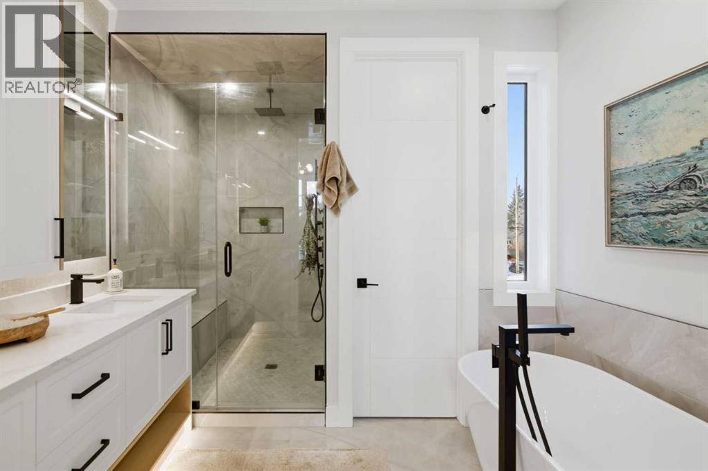 2,119 SQ.FT ABOVE GRADE | 4-BED | 3.5 BATH | HEATED GARAGE | A/C | PREMIUM FINISHES | Custom-built and offering 3,044 sq ft of refined inner-city living, this is a rare opportunity to own a luxury home in the sought-after community of Rosscarrock, steps from schools, parks, and Westbrook LRT with quick access downtown. The main floor features 10’ CEILINGS and a glass-walled front flex room perfect for a HOME OFFICE or private workspace, while the gourmet kitchen is designed for both everyday use and entertaining with full-height two-tone cabinetry, built-in appliances, a gas cooktop with pot filler, waterfall island, and a BUTLER'S PANTRY, flowing into a bright living space with a gas fireplace and CUSTOM MILLWORK. Large European tilt-and-turn windows and doors connect the interior to a COVERED BACKYARD DECK finished with composite boards, creating a low-maintenance outdoor living area. Upstairs, the primary bedroom includes a walk-in closet and a five-piece ensuite with dual vanities, a tiled shower, and HEATED FLOORS, along with two additional bedrooms, a full bathroom, a bonus room, and upper-level laundry. The fully developed basement adds a spacious recreation room with WET BAR, IN-FLOOR HEATt, a fourth bedroom, and a full bathroom. Additional highlights include wide-plank engineered hardwood on the main and upper levels, custom millwork throughout, built-in speakers, air conditioning, a HEATED DOUBLE GARAGE with epoxy floor, and over $50,000 in professional landscaping, delivering a level of finish and comfort that stands out in this established inner-city neighbourhood. Schedule a showing today before it's gone. (id:58070)