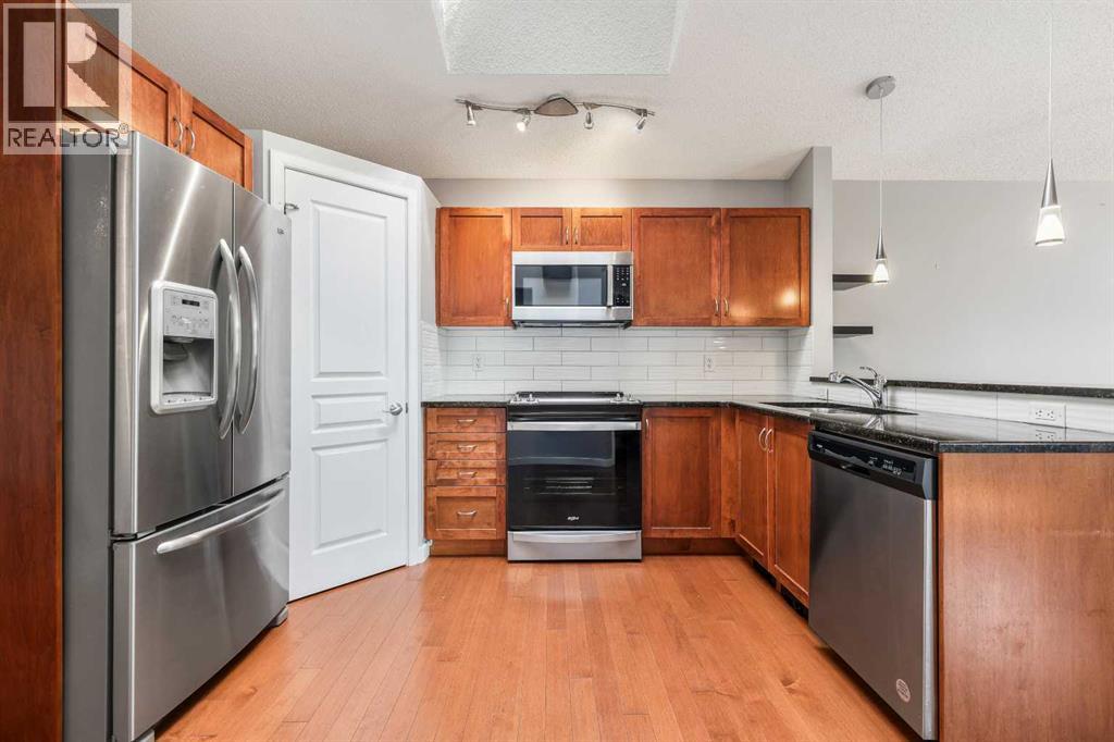 This little gem nicely and quietly tucked away in the lovely community of New Brighton will have you falling in love with the idea of Bungalow living all over again. With FOUR BEDROOMS and THREE BATHROOMS, there is ample room for all to enjoy. Whether you are a young growing family, ready to right size into one level living or considering the possibility of being an entrepreneur with a fantastic investment opportunity, this home will fit the bill. Clean and well taken care of, you will immediately be welcomed into almost 2000sqft of developed living space that is warm and cozy while being bright and beautiful. Stepping up to the main living area you will notice right away the gorgeous vaulted ceiling offering a 10ft peak opening up the space to include a great kitchen boasting GRANITE COUNTERTOPS, extended island creating a nice raised eating bar, classic subway tile back splash, sleek stainless steel appliances, corner pantry and a beautiful sunlit skylight that invites an abundance of natural daylight into the home. You will discover TWO BEDROOMS on the main floor with the Primary Bedroom boasting your very own en suite, while the secondary bedroom would be an ideal office or nursey. All of this that opens up to your spacious living room with the continued vaulted ceiling that carry's your sightline over, through over sized windows, into the back yard framed in by mature trees giving you a sense of being in an A-frame cabin. The FULLY FINISHED lower level offers so much additional living space with a huge family room with a corner gas feature fireplace with tile surround and wooden mantle. You will discover TWO MORE BEDROOMS (ONE WITH A WALK-IN CLOSET), A STYLISH FULL BATH and an additional living room area that could be used for a variety of uses; an office area, play space or media room. Stepping out to the back yard you will see a great little deck for your BBQ and then a great stone patio with room for multiple areas of entertaining. Fully fenced on a long yar d with a stone pathway out to your OVER SIZED DOUBLE DETACHED GARAGE WITH A PLETHURA OF SOLAR PANELS!! Help reduce utility bills with these already installed SOLAR PANELS!! This home is just steps to the green space, walking trails and within walking distance to High Street in McKenzie Town and just a short drive to all the amenities on 130th, Mahogany and Auburn Bay. Quick access to Stony Trail and Deerfoot and a short distance to the South Health Campus, numerous restaurants and movie theatre. Discover this great home today! (id:58070)