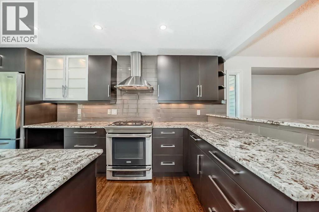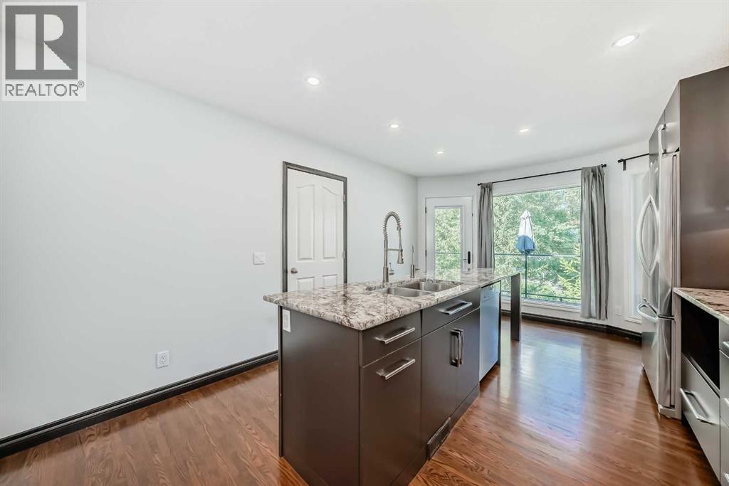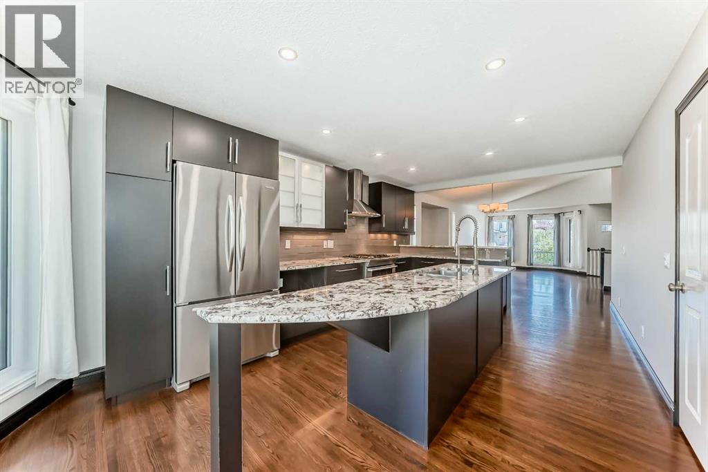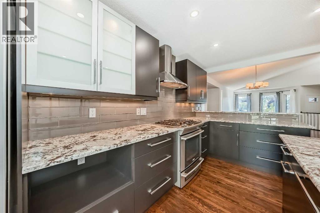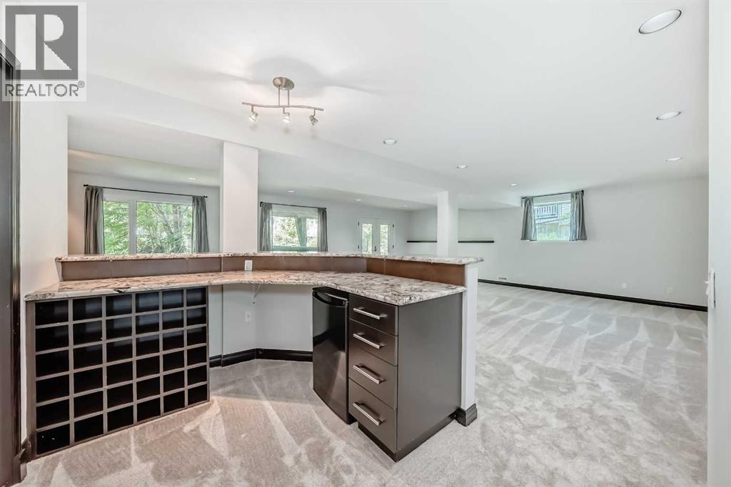 This 4-bedroom walkout bungalow is just STEPS FROM THE BOW RIVER in one of the community’s most desirable locations. Nestled on a quiet close and BACKING ONTO A PATHWAY, it offers a peaceful retreat with a WEST-FACING backyard where you can soak up the afternoon sun from the back deck or covered patio. The home’s modern curb appeal is highlighted by a welcoming front deck, while inside, vaulted ceilings and hardwood floors create a bright and open feel. The kitchen is thoughtfully designed with granite countertops, a pantry with pull-outs, and plenty of drawers for organized storage. The primary suite provides a private escape with a walk-in closet complete with custom organizers, along with a 4-piece ensuite featuring a STEAM SHOWER. Two additional bedrooms and another full bathroom complete the main level. Downstairs, the fully finished basement is built for entertaining and relaxation, with a spacious rec room showcasing a gas fireplace feature wall with built-ins, and a bar with wine racks. You’ll also find a 4th bedroom, 3rd bathroom, and abundant storage space. Step outside to a beautifully landscaped yard filled with perennials and mature trees, a wooden patio, and a hot tub for year-round enjoyment. The garage is heated and finished with epoxy flooring, while the resurfaced driveway adds both function and style. From your backyard, pathways connect directly to parks and the river, blending lifestyle and convenience in one perfect location. Extras include a Kinetico water filtration system, a 12 kWp solar system with 10 kWh battery, and phantom screens. Recent updates include new basement carpet, updated windows and doors, shingles, garage door, water heater, and fresh paint. With major interior renovations completed in 2010, this home combines thoughtful updates with timeless design. (id:58070)