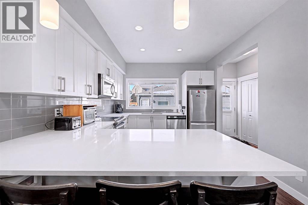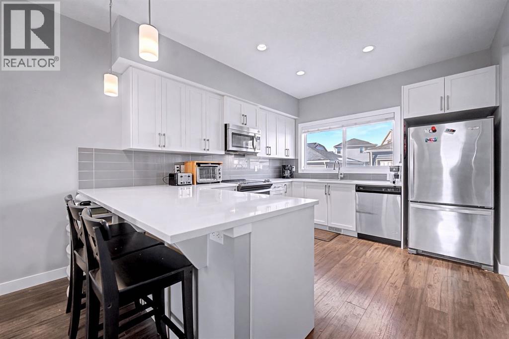 OPEN HOUSE | SAT (Mar 14) & SUN (Mar 15) | 1pm-4pm | NO CONDO FEES | END UNIT! | Welcome to this beautifully maintained end-unit 2-storey townhome with NO condo fees in the sought-after NW community of Nolan Hill, built by Shane Homes in 2015. Combining thoughtful design, modern finishes, and a functional layout, this home offers comfortable living with the added benefit of extra privacy as an end unit.Step inside to an inviting open-concept main floor where the bright living room is filled with natural sunlight from two large windows, creating a warm and welcoming atmosphere. The space flows seamlessly into the spacious dining area and well-appointed kitchen, perfect for both everyday living and entertaining. The kitchen features quartz countertops, stainless steel appliances, ample counter space, plenty of cabinetry, a breakfast bar, and a window overlooking the private backyard. Just off the kitchen you’ll find a convenient 2-piece bathroom, pantry, and direct access to the backyard, making outdoor gatherings and barbecues effortless.Upstairs, the home offers three comfortable bedrooms, including a bright primary retreat filled with natural light from two windows, complete with a walk-in closet and a private 3-piece ensuite. Two additional bedrooms, a 4-piece main bathroom, and stacked laundry conveniently located in the hallway complete the upper level.The fully finished basement offers approximately 617 sq. ft. of additional living space, featuring a 4-piece bathroom and plenty of storage, providing flexibility for a recreation area, home office, or additional living space.Step outside to enjoy your private fenced backyard, thoughtfully designed with both relaxation and functionality in mind. The yard features a beautiful crabapple tree, a concrete patio, and a wooden deck, creating the perfect space for summer barbecues, morning coffee, or relaxing evenings outdoors. The backyard also provides direct access to the double detached garage with convenient al leyway access, offering secure parking and additional storage.Located in the vibrant community of Nolan Hill, this home offers incredible convenience and lifestyle amenities. Enjoy nearby walking paths, scenic ponds, playgrounds, and green spaces, perfect for evening strolls, morning runs, or spending time outdoors with family and pets. Everyday essentials are just minutes away with Costco, restaurants, and shopping centres only about 5 minutes away, while quick access to Stoney Trail makes commuting across the city simple and efficient.This is a fantastic opportunity to own a modern, move-in-ready home with no condo fees in one of Calgary’s desirable northwest communities. SELECT PHOTOS ARE VIRTUALLY STAGED. (id:58070)