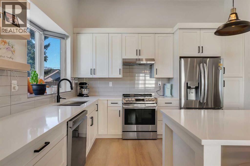 Welcome to 9816 Austin Road SE. Tucked away on a quiet, tree-lined street, this extensively upgraded four-bedroom, three-bathroom home combines modern luxury with timeless design. Every detail has been thoughtfully planned and professionally renovated—nothing was overlooked. From the moment you arrive, the stunning low-maintenance front garden and freshly stuccoed exterior set the tone for what’s inside. Step through the front door and you’re greeted by an impressive open-concept living space featuring vaulted ceilings, exposed beams, and a custom fireplace that anchors the room in warmth and style. The chef-inspired kitchen is equipped with high-end finishes, premium cabinetry, and an elegant flow perfect for both entertaining and everyday living. Upstairs, retreat to your luxurious primary suite with a walk-through closet leading to a spa-inspired five-piece ensuite—complete with soaking tub, double vanities, and top-tier fixtures. A second spacious bedroom and full three-piece bathroom complete the upper level. The lower level continues to impress with two additional bedrooms, a modern three-piece bathroom, laundry area, and a large recreation room ideal for movie nights or a home gym. No detail was spared in this transformation. Extensive front landscaping, a new roof (2023), and prior renovations including new windows, furnace, hot water tank, kitchen, bathrooms, flooring, and that incredible ensuite—this home truly has it all. If you’re looking for a move-in-ready home in one of Calgary’s most desirable, family-friendly neighborhoods, 9816 Austin Road SE delivers craftsmanship, comfort, and character in every square foot. (id:58070)
