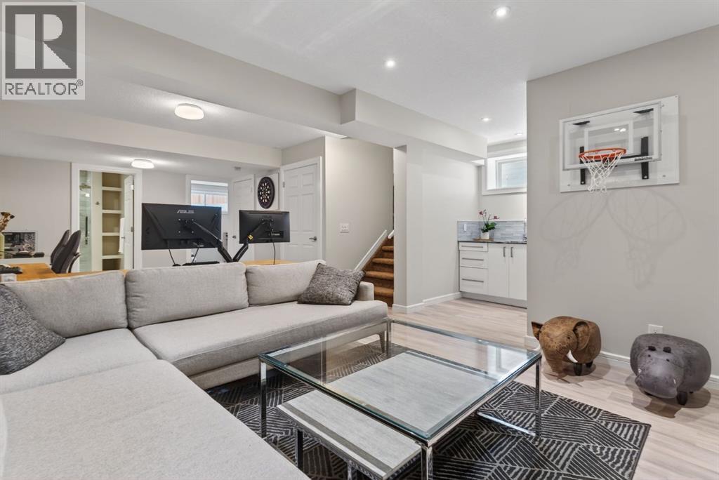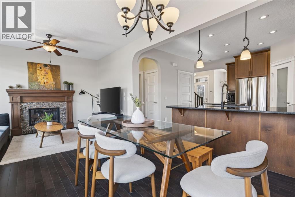 Welcome to this beautifully maintained former showhome in the heart of Evanston — offering timeless style, thoughtful upgrades, and over 2,300 sq ft of fully developed living space designed for both connection and comfort. Built in 2011, this 2-storey home stands out with its subtle midcentury modern influence, warm maple cabinetry, rounded architectural arches, and a layout that feels open yet intentional. The main floor seamlessly blends the kitchen, dining, and living spaces — creating an ideal environment for everyday living and effortless entertaining. The kitchen features granite countertops, stainless steel appliances, a central island, and a walk-in pantry, all anchored by rich cabinetry and classic finishes that feel elevated without feeling trendy. The adjacent living room is warm and inviting with a gas fireplace, while large windows fill the space with natural light. Upstairs, you’ll find three spacious bedrooms including a generous primary retreat complete with a 5-piece ensuite featuring a double vanity, soaking tub, separate shower, and walk-in closet. A full 4-piece bathroom and convenient upper laundry room complete this level — adding everyday functionality for busy households. The fully finished basement expands your living space with a large recreation and entertainment area, an additional bedroom, full bathroom, and a built-in wet bar — creating the ultimate movie night, game day, or hosting space. As a former showhome, this property is exceptionally well-appointed with air conditioning, built-in speakers throughout the top two floors, granite countertops, maple cabinetry, and carefully selected finishings throughout. Outside, enjoy a private fenced backyard and a detached oversized double garage with ample room for storage and larger vehicles — a rare and valuable feature. Located in the family-friendly community of Evanston, close to parks, schools, pathways, shopping, and major routes for easy commuting, this home offers the perfect blend of design, functionality, and lifestyle. (id:58070)
